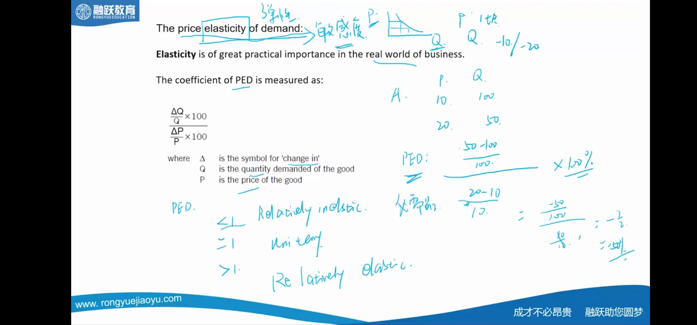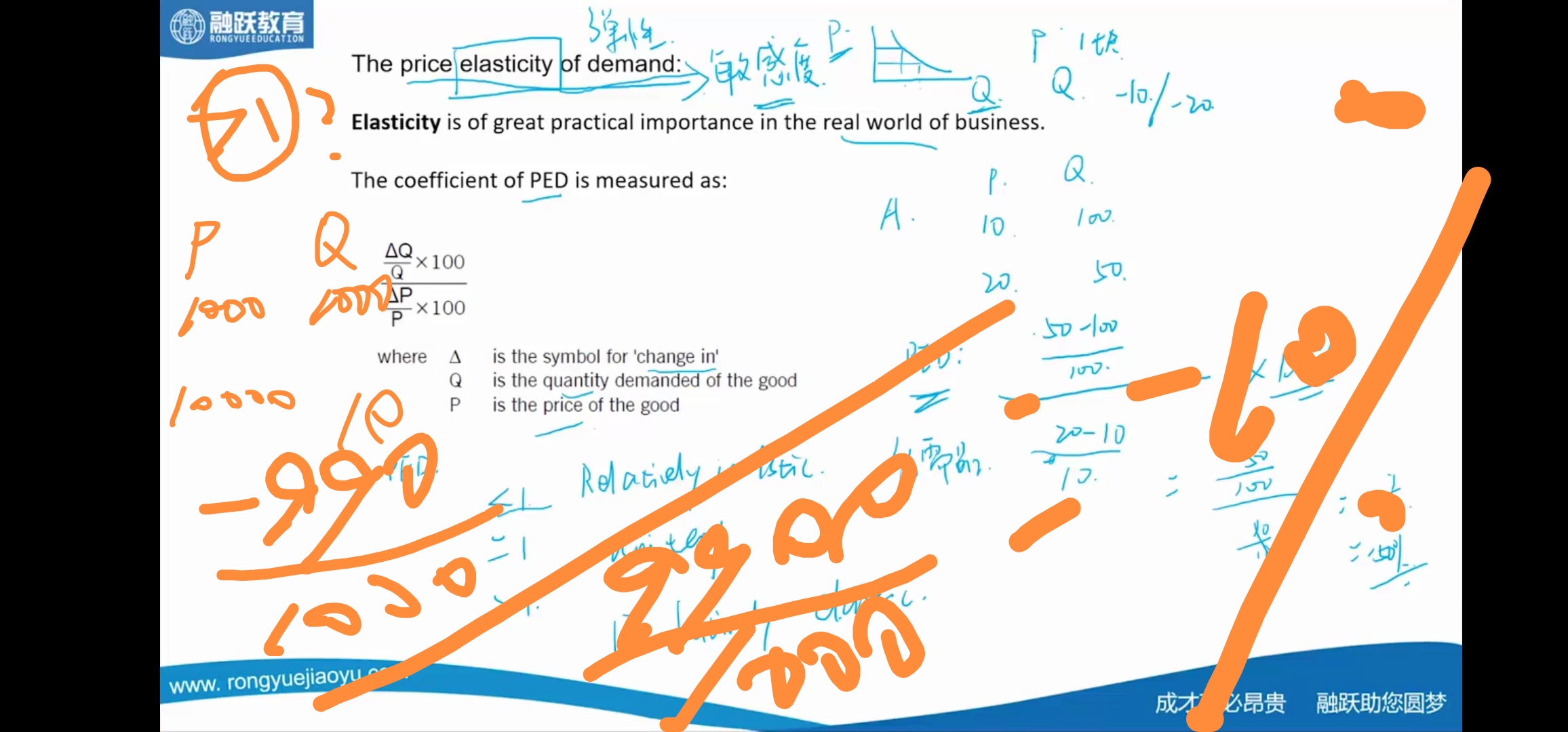 老师,奢侈品P从1000到10000 Q从1000到100那最后算出来的PED不是小于一吗,我哪算错了吗?谢谢老师