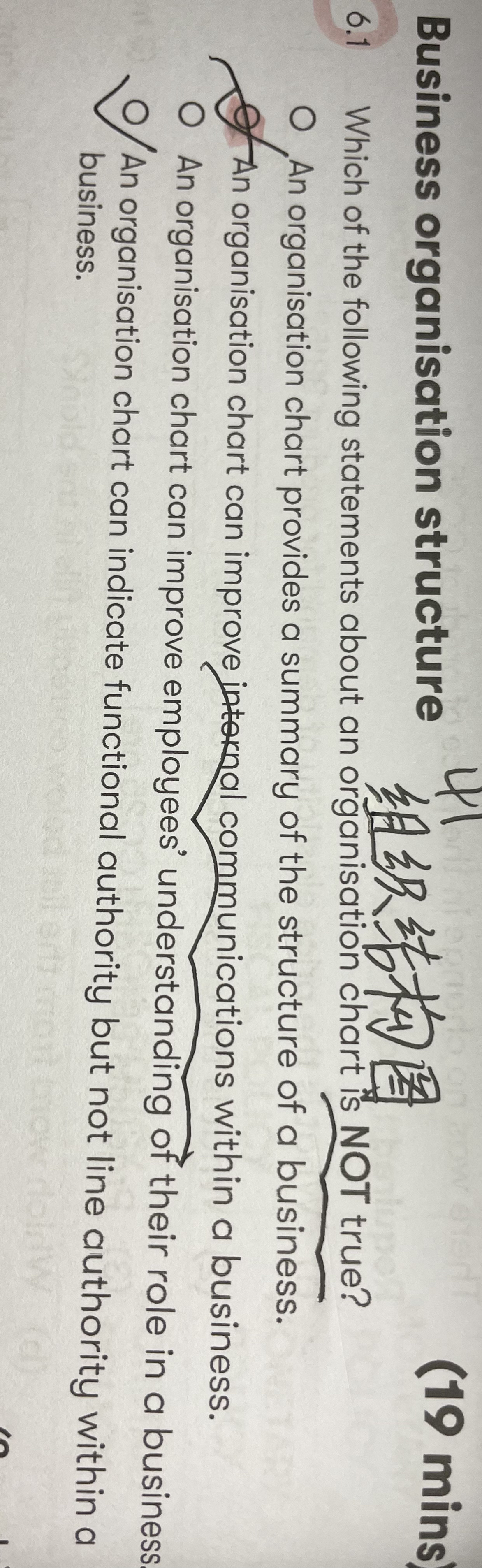 同学您好,第二个:通过组织结构图你就知道当你遇到问题时你应该去找哪个部门,这个部门是由谁负责的。所以它可以促进组织内部的沟通。第四个组织结构图把企业组织分成若干部分,并且标明各部分之间可能存在的各种关系,例如上下级领导关系。所以第四个错误