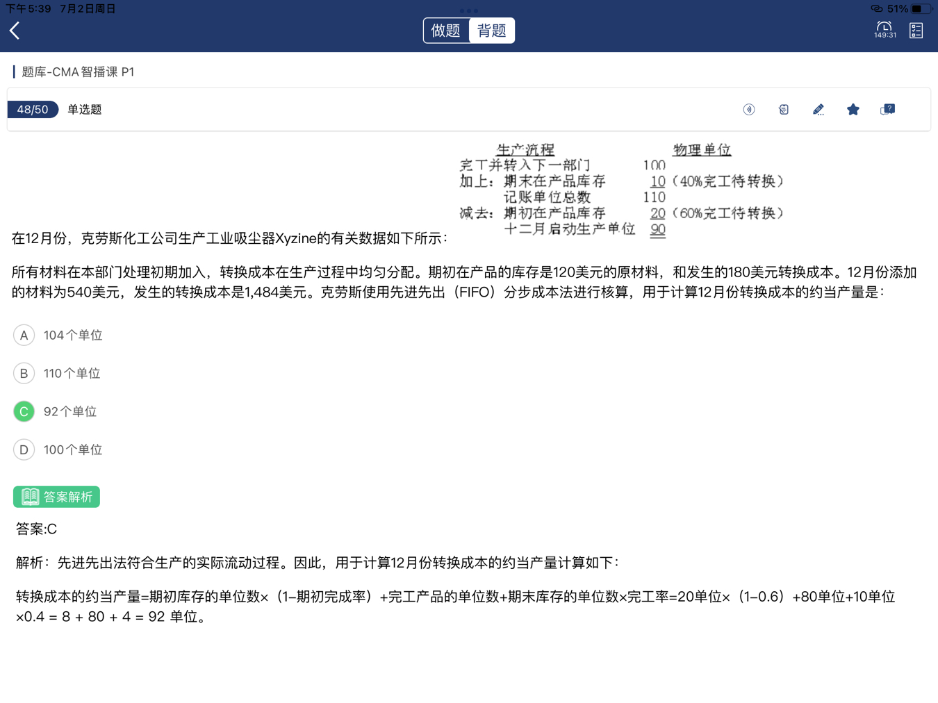 同学你好,根据第一段信息可以了解到,本期完工产品数量=期初库存+本期生产-期末库存=20+90-10=100。本期采用先进先出法进行核算,那也就说期初的先完成,所以本期完工产品100中,有20是期初投入本期完工的,有80是本期开始投入并且在本期完工的。
