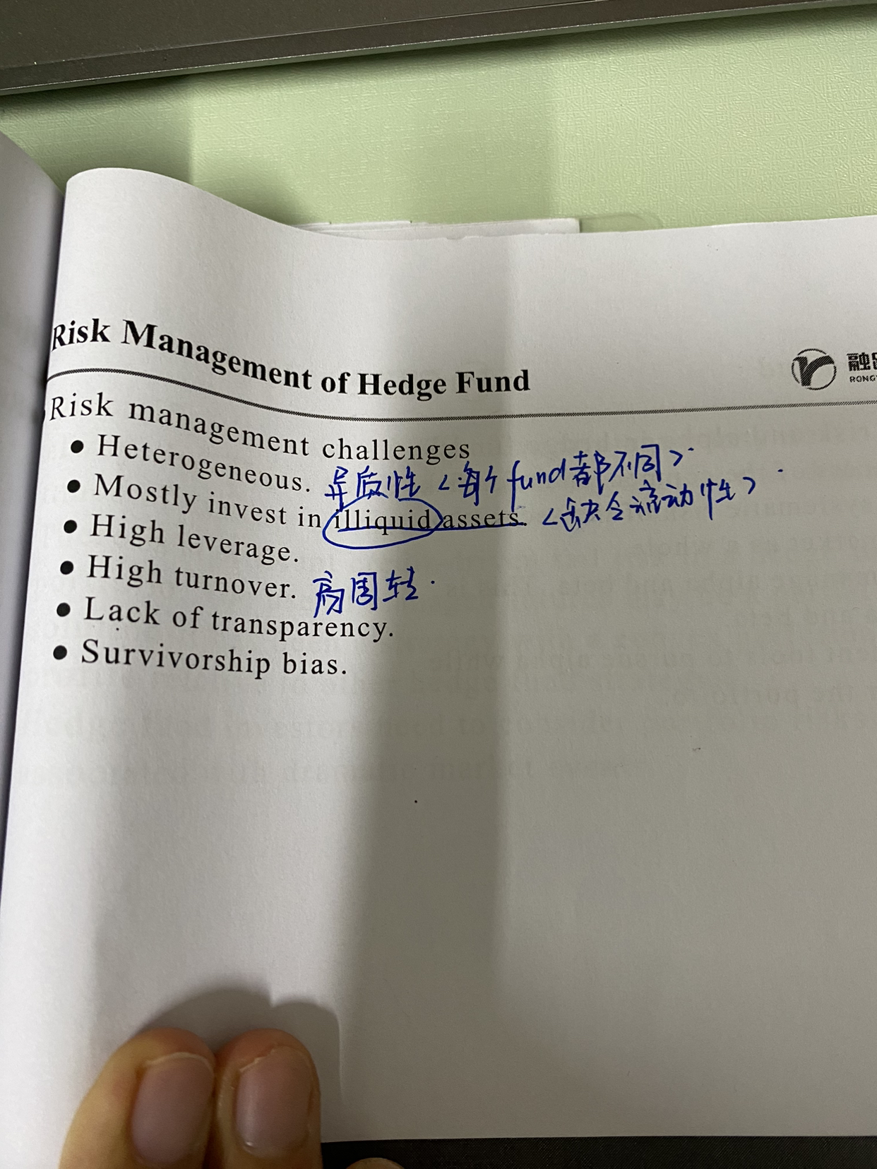 同学你好,周转率指的是管理标的资产的买卖频率,而流动性指的是标的资产本身的流动性强弱,一般情况下,流动性较好的资产周转率也较高,流动性较差的资产周转率较低,周转率较高的资产需要的交易费用也较高,出现风险的概率也比较大,所以这对于对冲基金来说也是一个挑战。