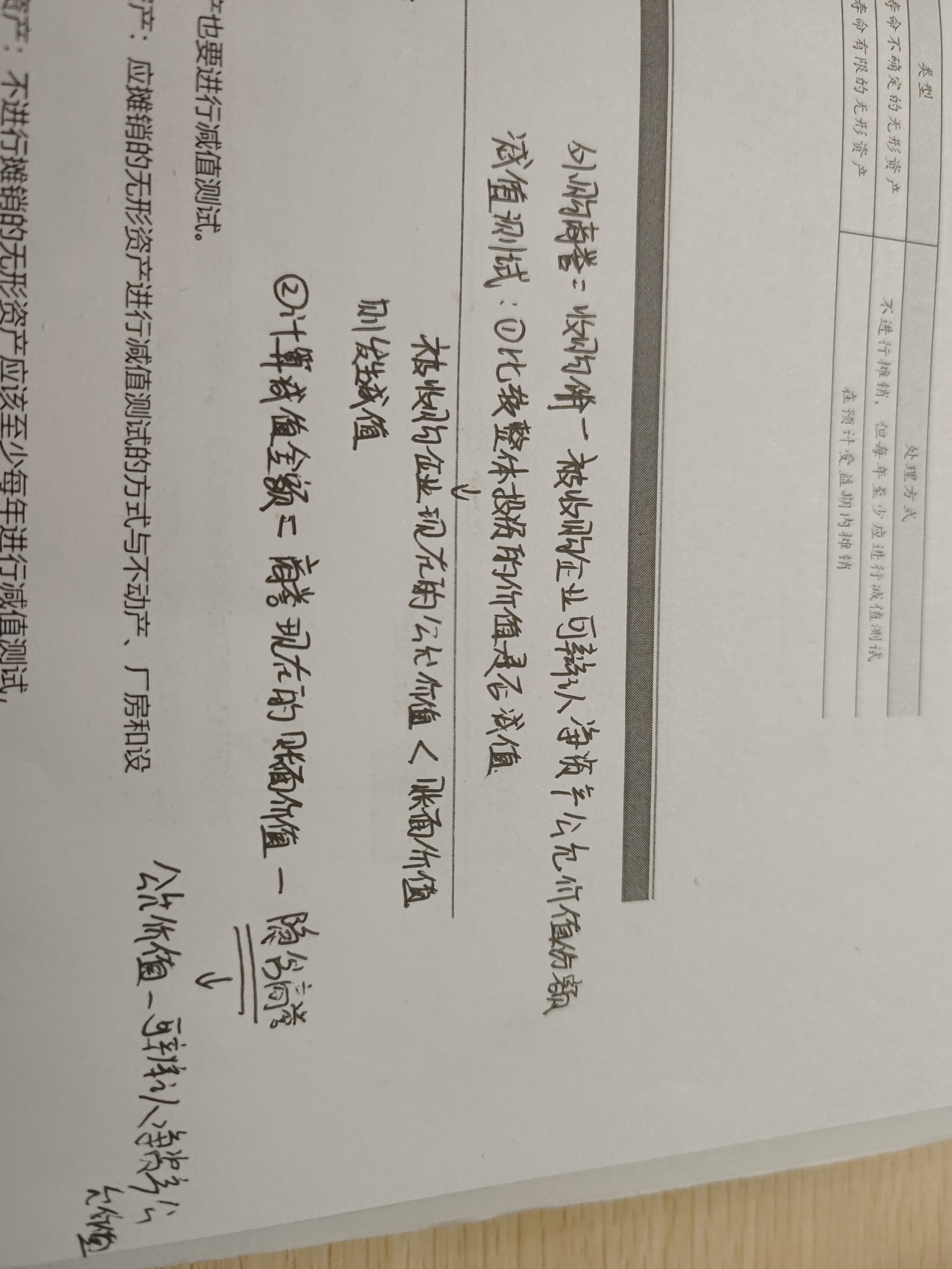 (2)商誉减值测试的方法:在企业合并时,它是购买企业投资成本超过被合并企业净资产公允价值的差额,商誉的存在与企业自身无法分离,故不可辨认,本身不能产生独立现金流,没有办法直接测试商誉是否减值。所以要测试商誉是否减值就要用间接的办法,就是对含商誉的资产组在剔除商誉和不剔除商誉的情况分别测试有没有减值,以此方法间接测试商誉是否减值。如果资产组中的可辨认资产减值了,企业要先将这部分减值冲减这个可辨认资产的减值,否则,如果不做第一步,直接做了第二步,那么这个可辨认资产的减值就会去抵减商誉了,不符合实际情况。(3)第二个问题的最后一个问题,理解的没毛病。