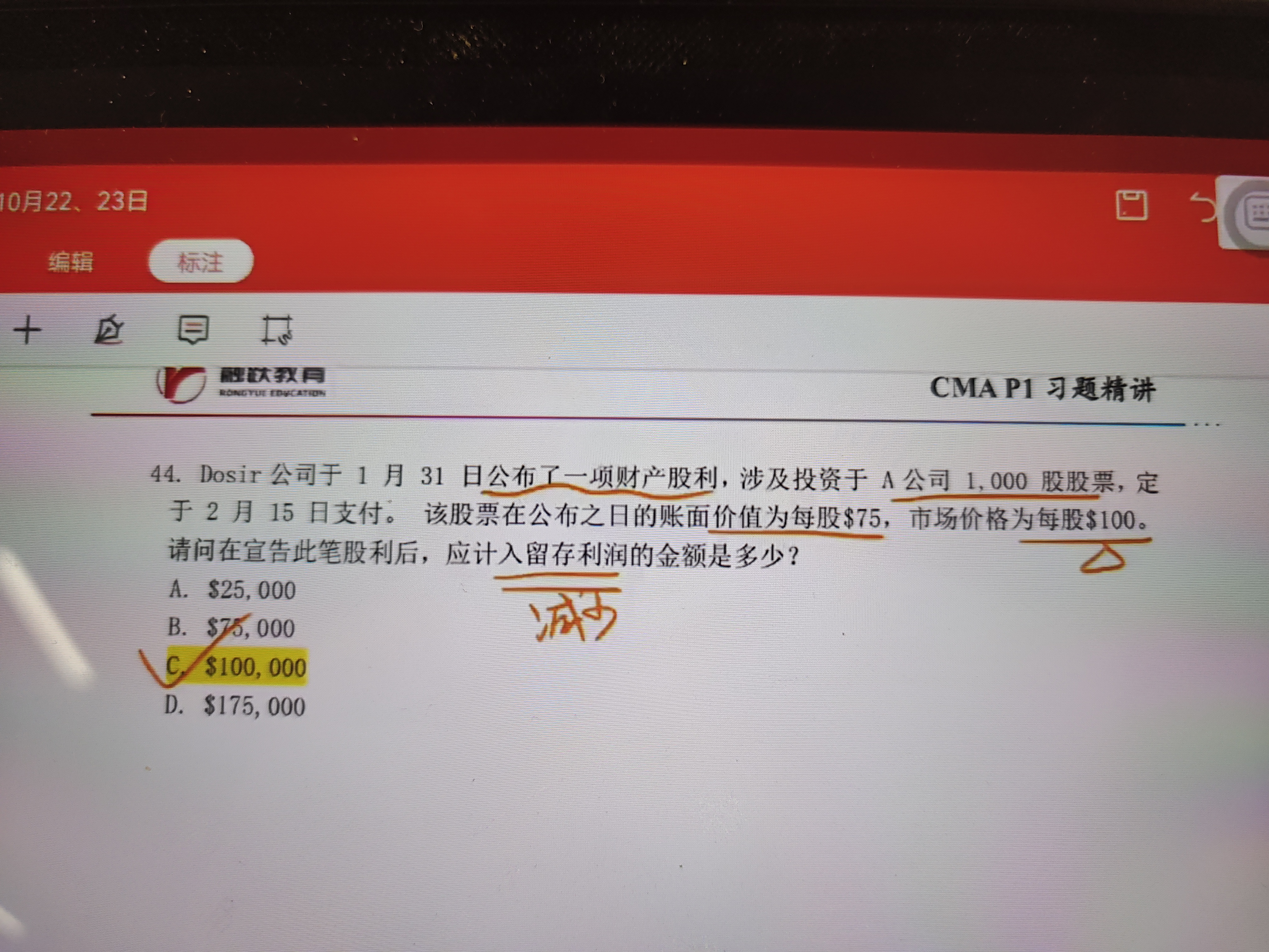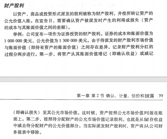 同学你好,①首先,财产股利:以现金以外的其他资产(如公司所拥有的其他公司的有价证券)支付股利,并按所转让资产的公允价值入账。②所以这道题目的意思是:Dosir以A公司的1000股股票进行股利分配,按照公允价值计量。