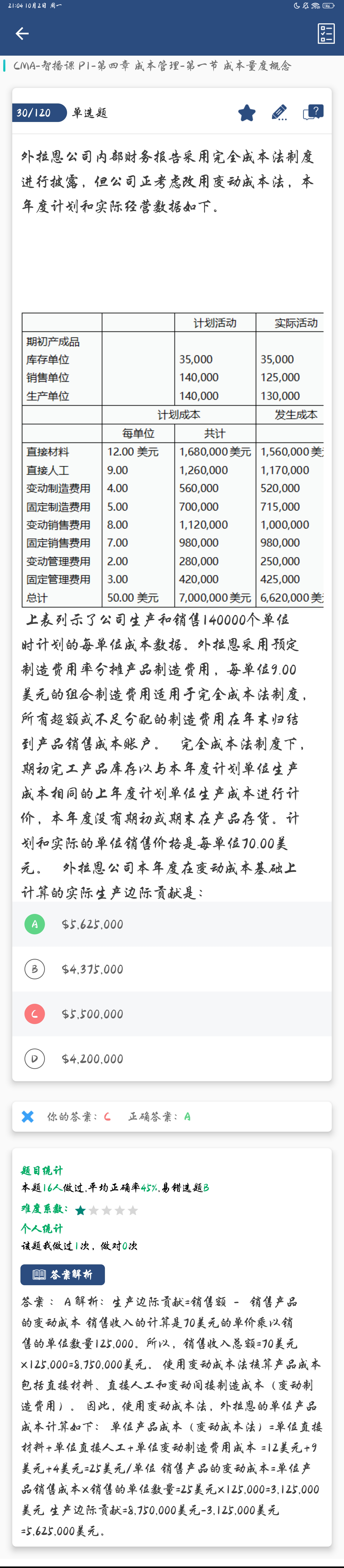 同学你好,因为给的实际成本是实际生产成本,而计算边际贡献的时候使用的是销售成本
