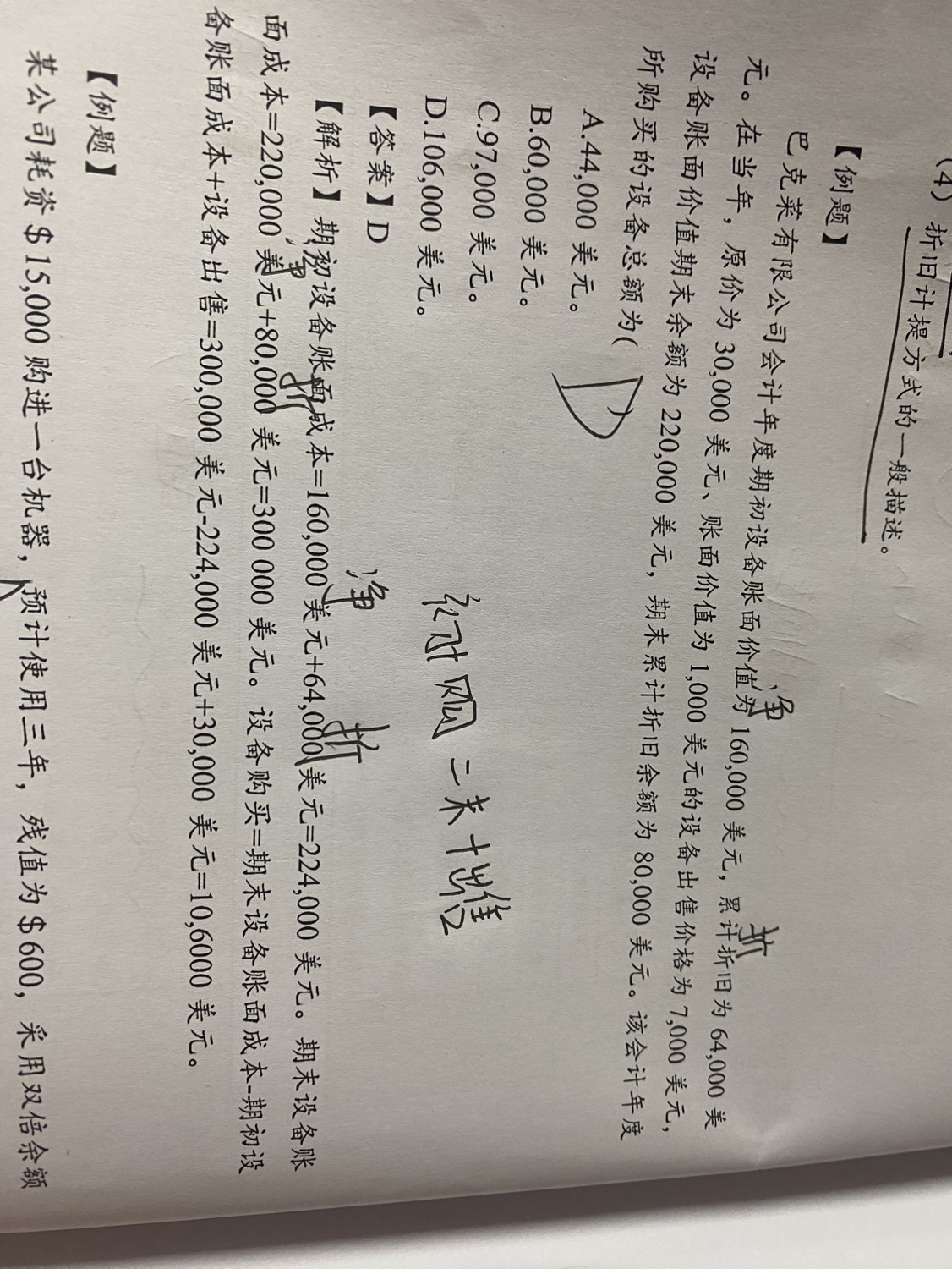 同学你好,题目信息:在当年,原价为30000美元、账面价值为1000美元的设备出售价格为7000美元。这里给出的信息是出售资产的资产总额为30000美元。