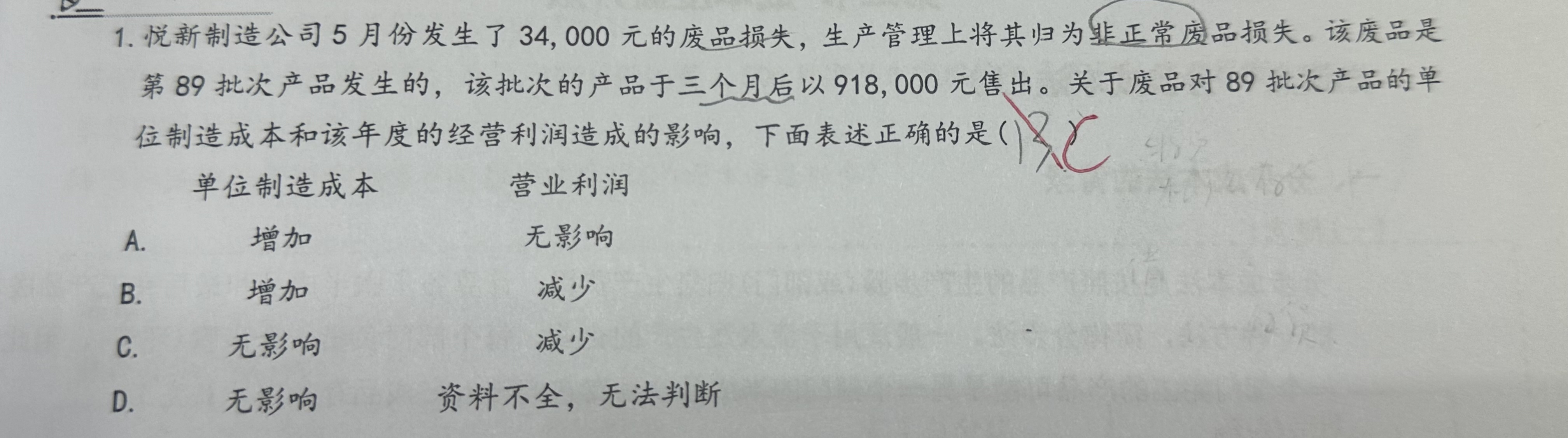 同学你好,①这里需要辨别正常损失与非正常损失。正常损失可以计入成本,比如买了10个鸡蛋5元钱,拿回家的路上破了一个,属于正常损失,那一个鸡蛋的成本是多少?单位成本=5/9。②而非正常损失不可以计入成本,计入损益,一个鸡蛋的成本=5/10,其中非正常损失鸡蛋的成本计入损益科目。不影响其他鸡蛋的单位成本。③因为计入损益,所以减少了净利润。