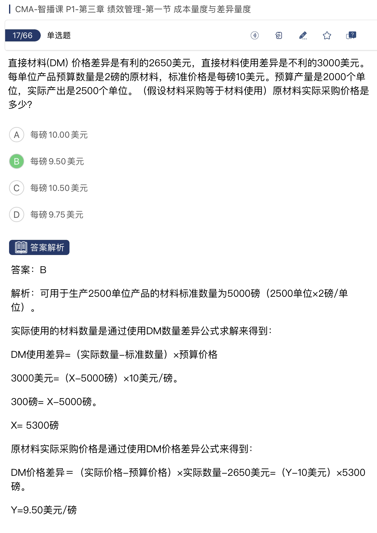 标准数量 含义是:用于生产实际数量的产品所耗费的标准直接材料的数量=实际数量×预算的单耗价格。