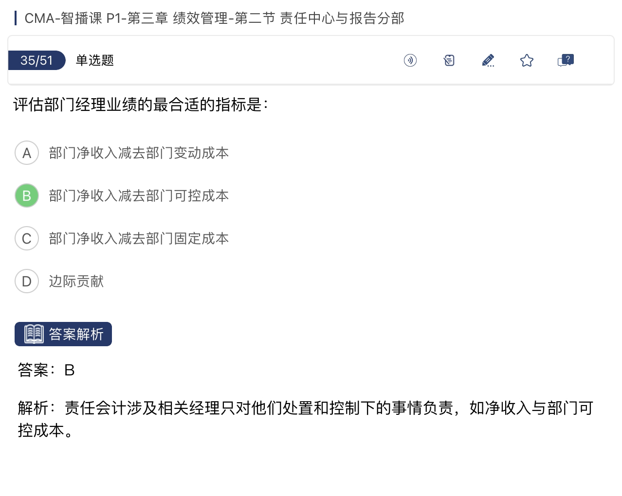 同学你好,边际贡献=销售收入-变动成本。但是部门经理对整个部门负责,他有权决定部门里酌量性固定资产,所以需要减去部门经理可控的变动成本。但是不可控的成本不能作为他业绩考核的内容。
