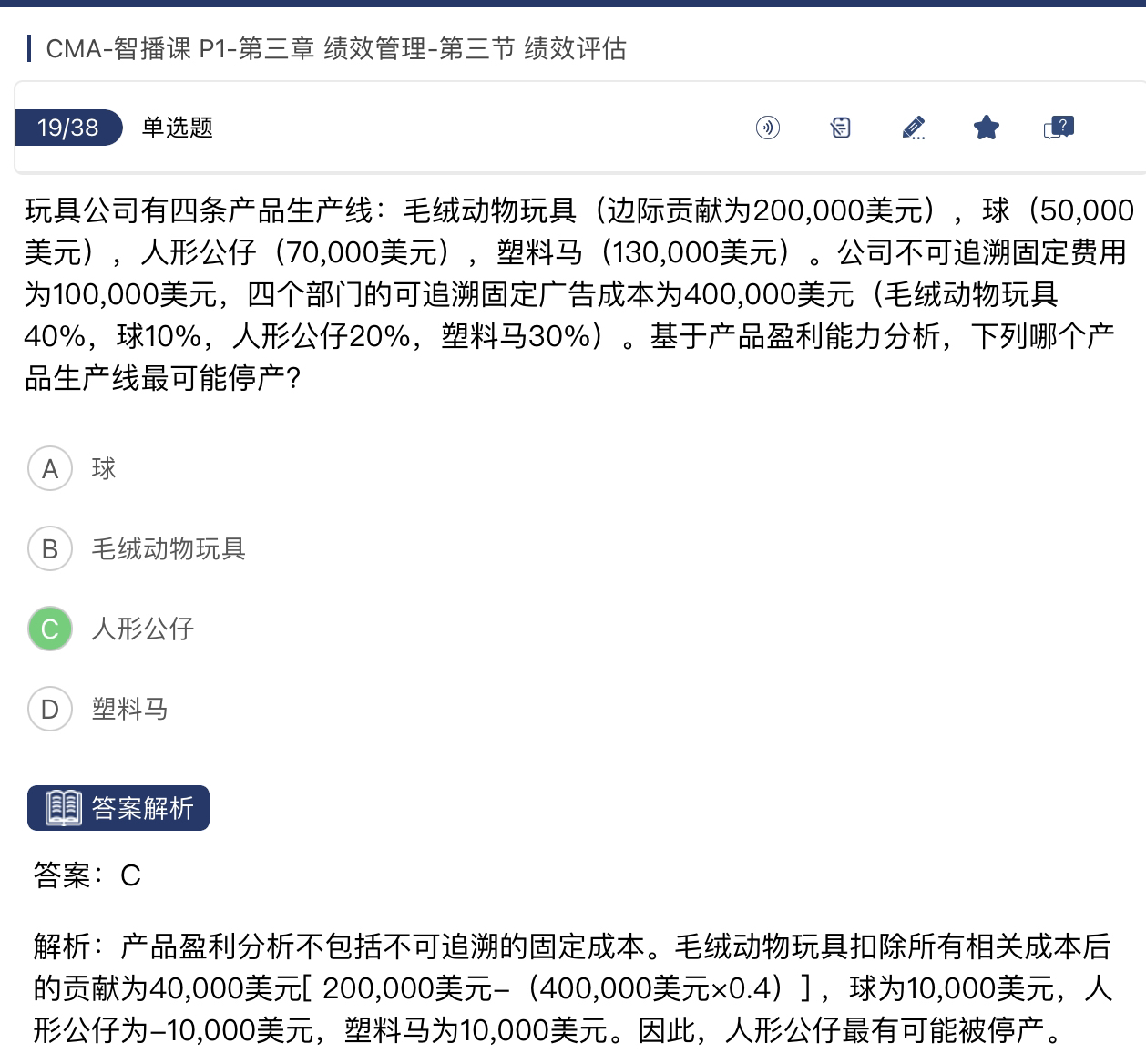 可能上次解答的时候,给您产生误解。本义想表达的是,可追溯固定资产是部门经理可控的,所以在计算部门收益的时候,需要把可追溯固定资产给计算上。