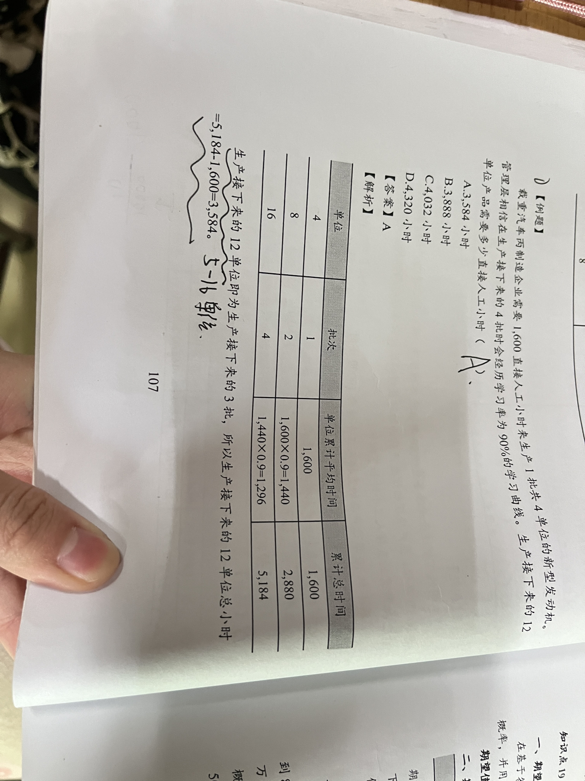 同学你好,在这里是的。累计总时间=增加的单位产出乘以每单位累计平均时间。因为这里是第一批总花费1600小时的直接人工,所以下面都按照批次相乘。