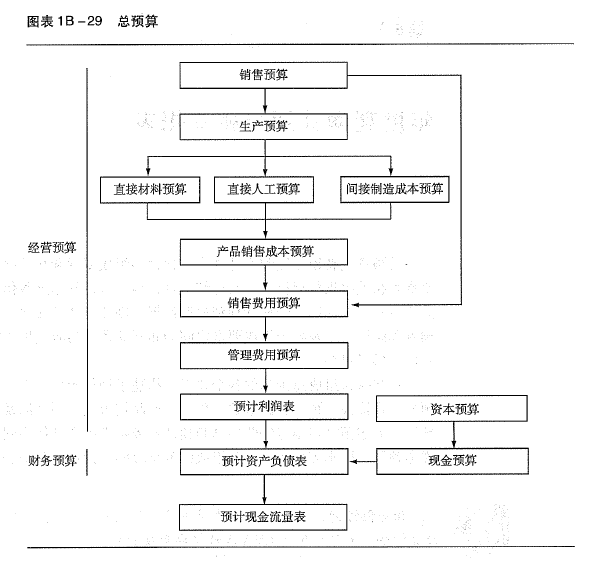 ①预计利润表会使用到销售预算,产品销售成本预算,销售和管理费用预算。②现金预算会使用到资本预算的信息。③编制预计资产负债表会使用到现金预算和预计利润表的信息。总预算的顺序如下图: