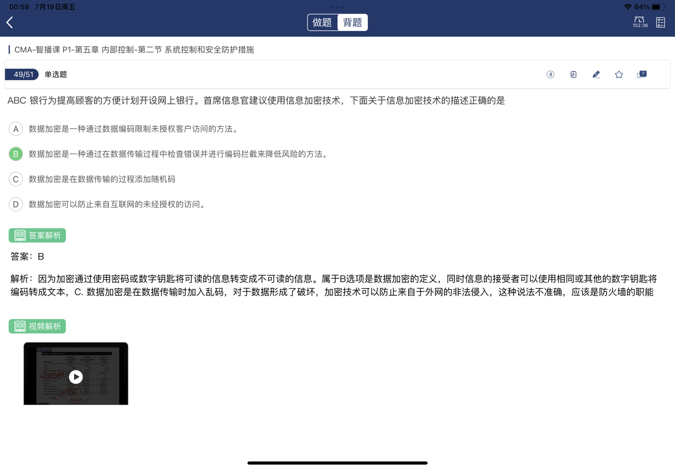 A选项的理由是一样的呀,通过数据加密将可读信息转换为不可读信息,而不是限制未经授权客户的访问。