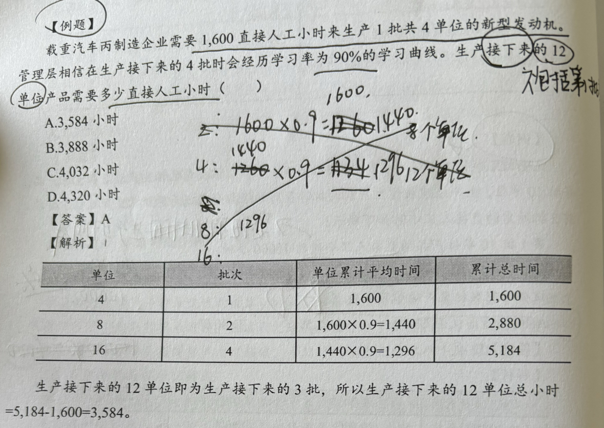 同学你好,你问的是生产16件产品总的时长吗?等于计算第四批次时,计算的平均累积时间=1296小时,总过4批次,总时长=5184小时。所以总时长时5184小时