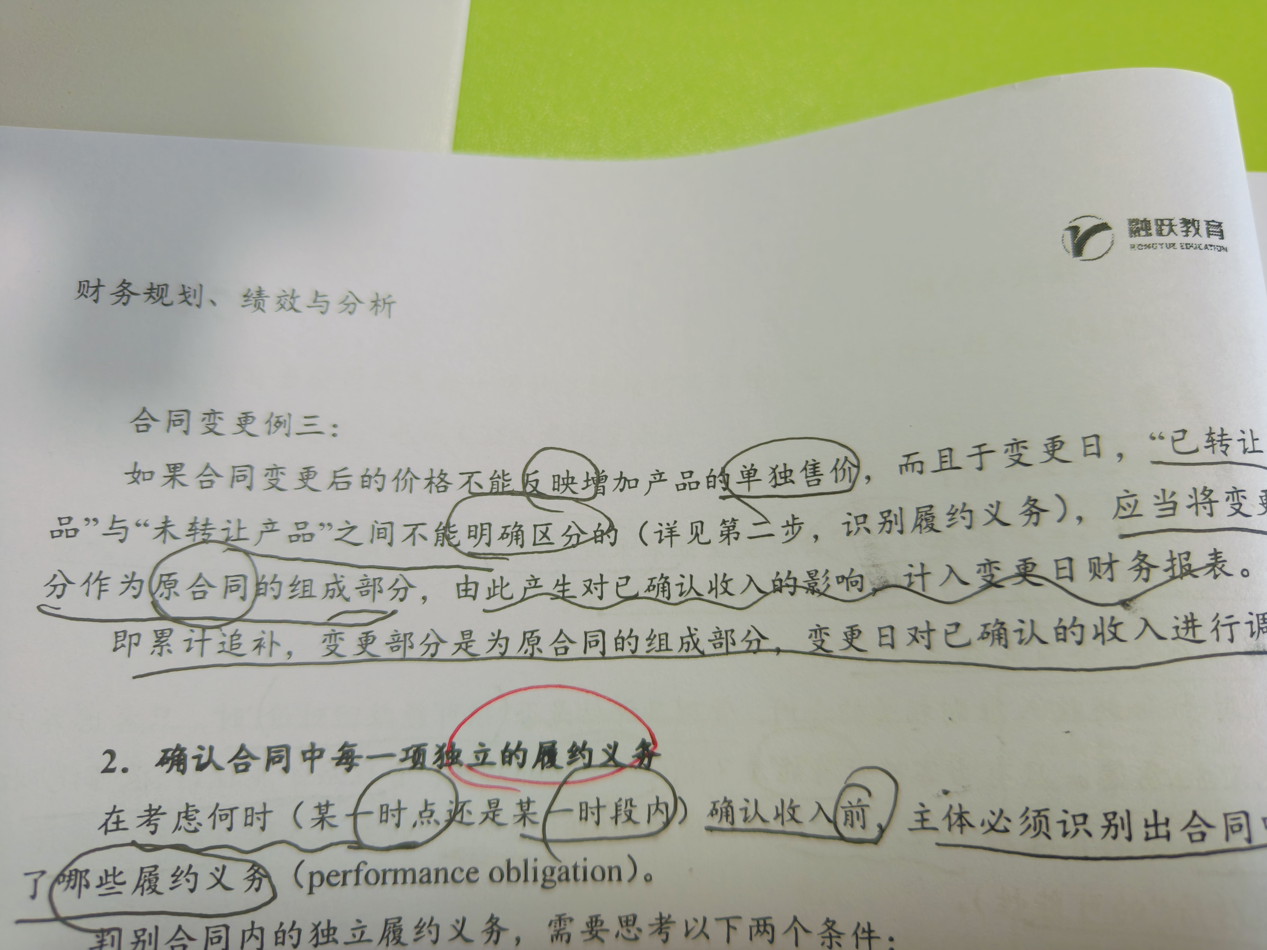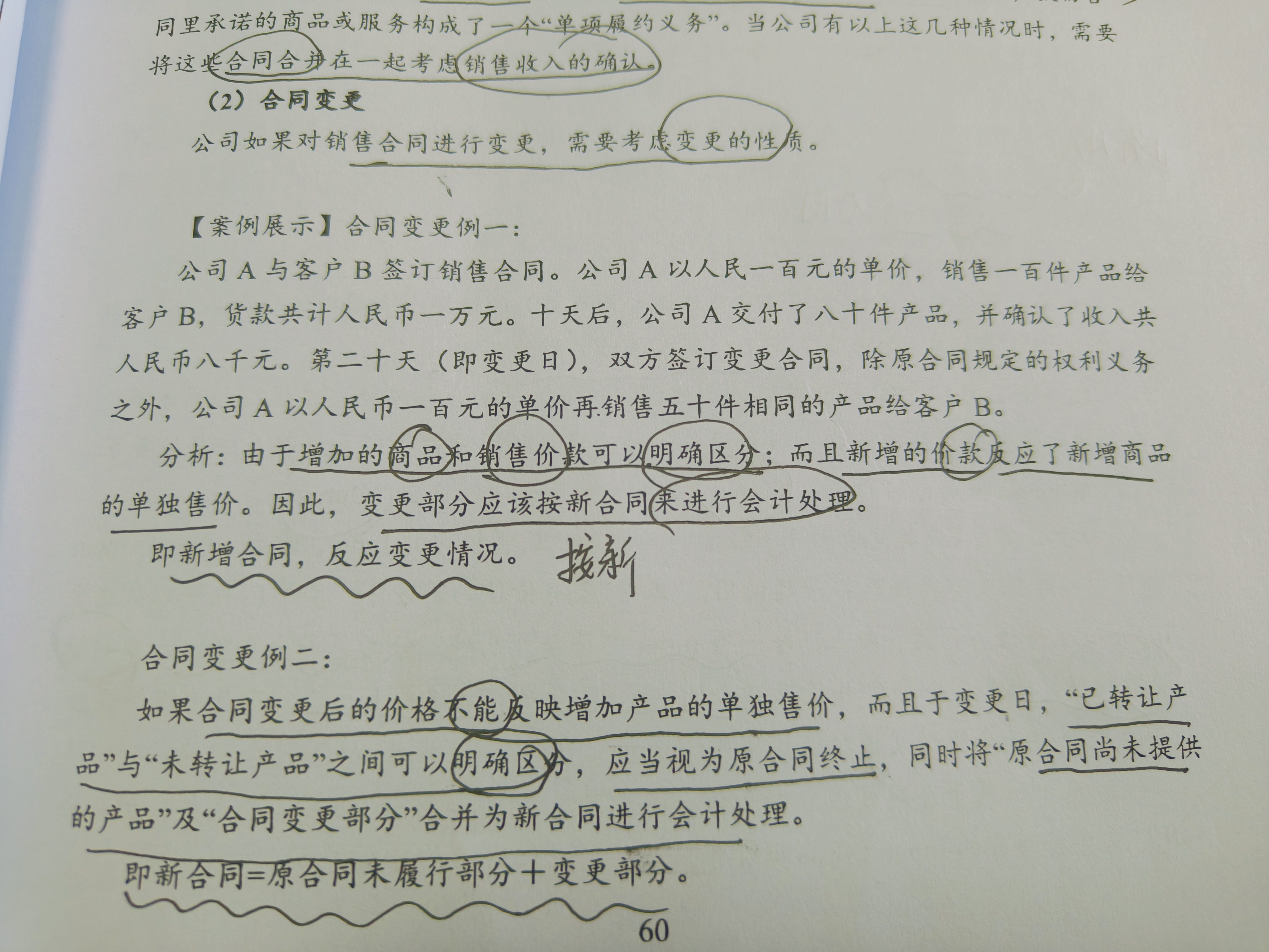 三、合同变更部分作为原合同的组成部分进行会计处理。这种情况首先是在合同变更不满足第一种情况的时候,且在合同变更日已转让的商品与未转让的商品之间不可明确区分,这种时候将该合同变更部分作为原合同的组成部分,在合同变更日重新计算履约进度,并调整收入和相应的成本。所以在区分的时候最主要的几点是:①是否增加了可明确区分的商品和合同价款。②新增的合同条款是否反映了新增商品的单独售价。