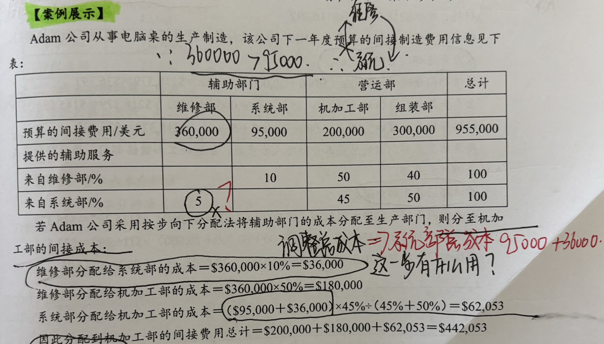 同学你好,因为采用的是按步向下分步法,从提供服务部门多的向提供服务部门少的进行分配,一步步向下进行分配。维修部提供的预算服务多,所以从维修部开始进行分配,维修部可以向系统部进行分配,但是系统部不再向维修部进行分配