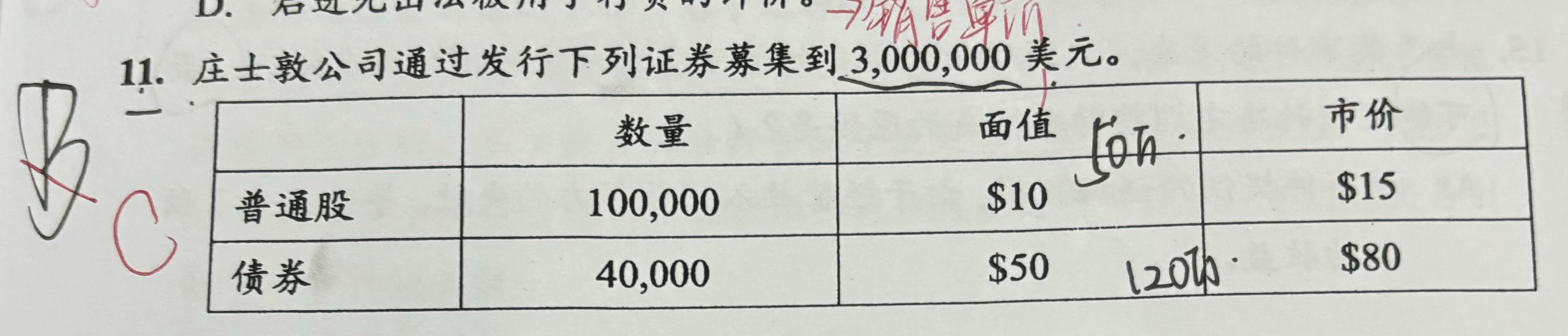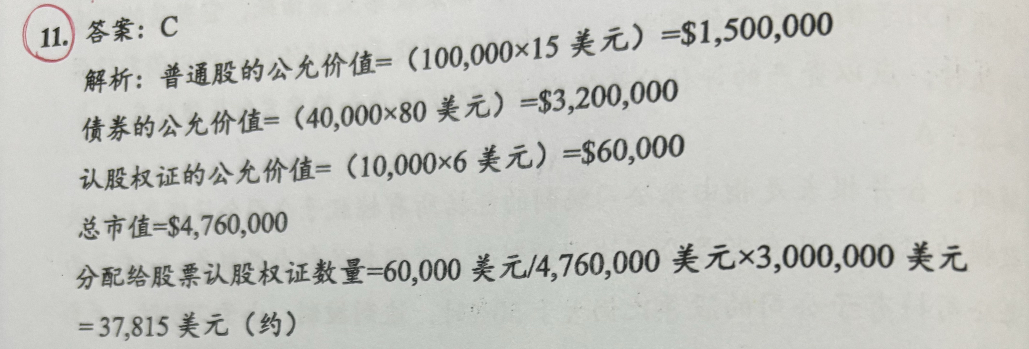 同学你好,比例法按照各种类型的公允价值占比进行计算。然后按照这个占比再计算所筹集的资金。
