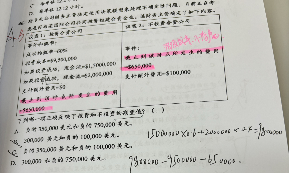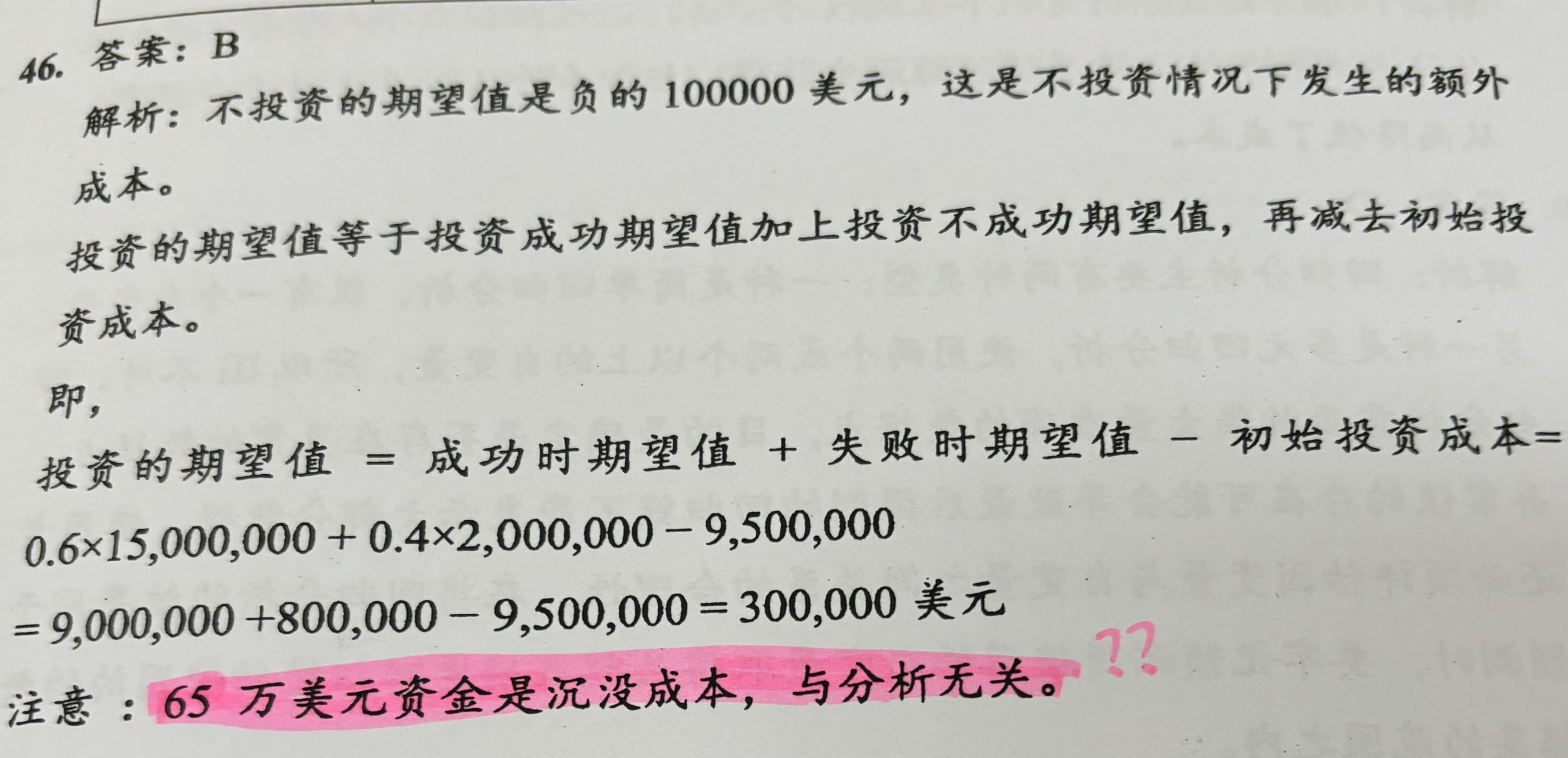 同学你好,①沉没成本不考虑的原因是,不管是否采用新措施,这个成本都已经发生。所以这个成本不影响决策。②是的。