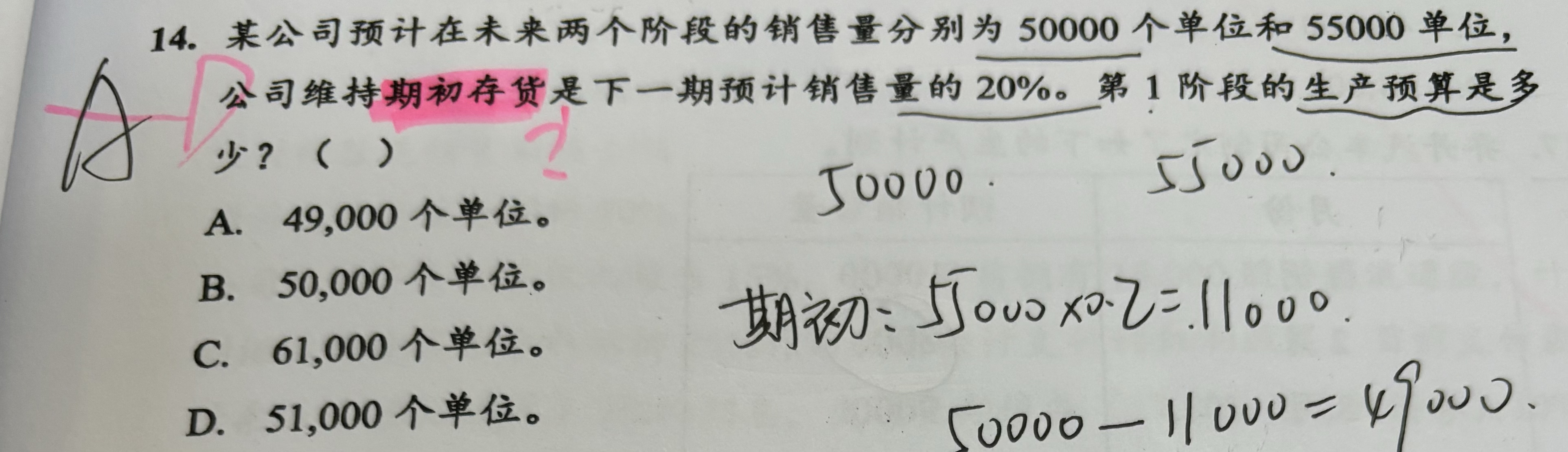 同学你好,①根据题干信息可知:期初存货=下一期销售量的20%。②另外一个恒等式:期初存货+本期增加=期末存货+本期减少。③本期的期初存货=上一期的期末存货