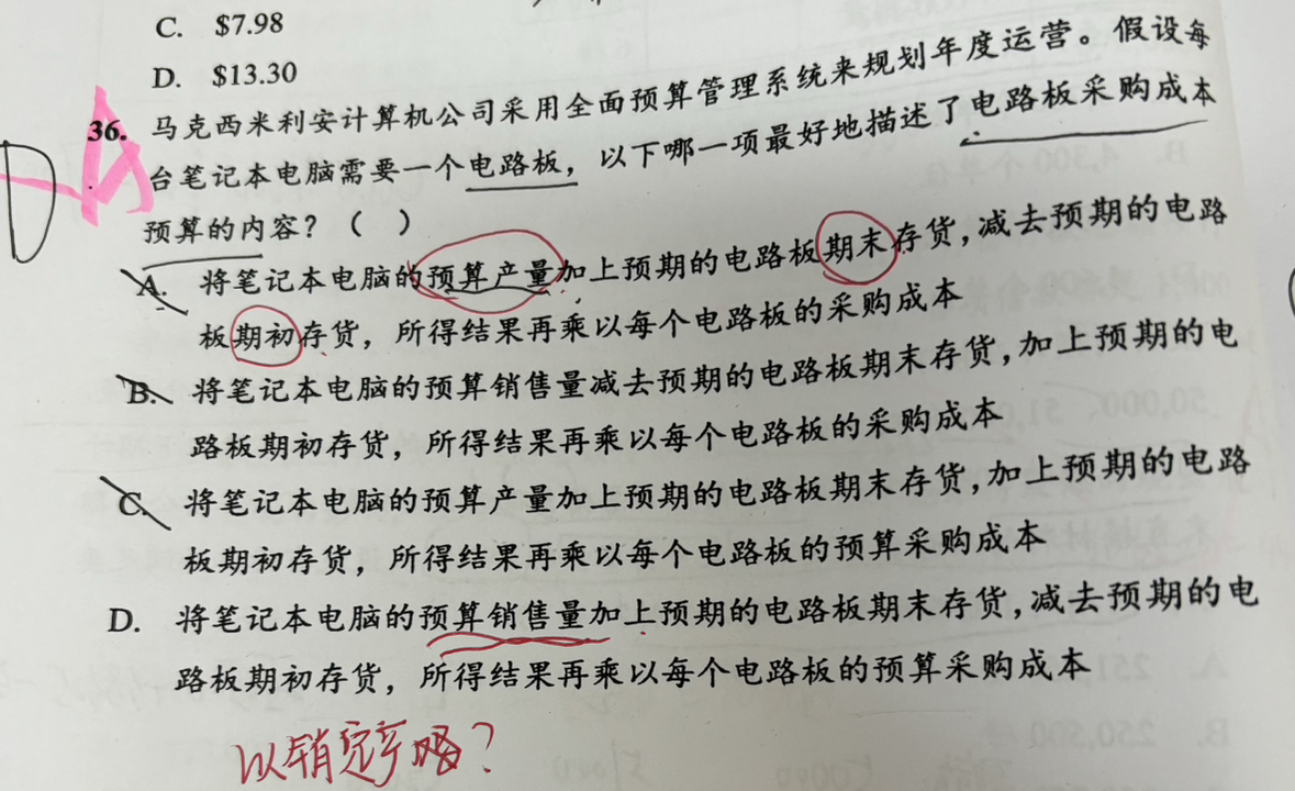 同学你好,以销定产,以电脑的预算销售量来判断电脑的生产数量。但是题目问的是电路版,电路版的生产数量是根据电脑的生产数量来判断的。