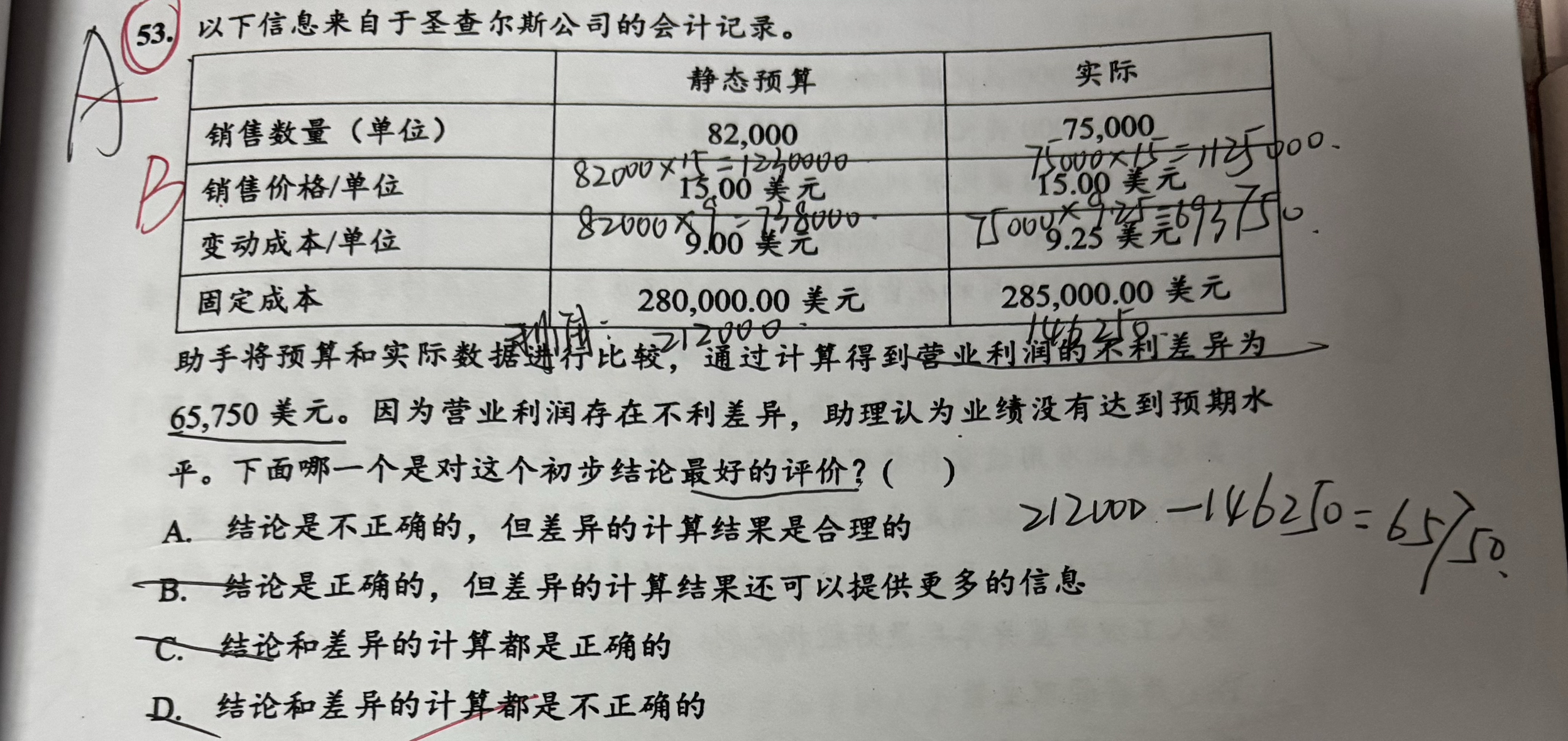 题目 的意思是,他把静态预算跟实际结果比,不利,说明表现不好。 这个结论是正确的。 但是如果改为弹性预算再跟实际比,更有说服力,这就是这句话后半句的意思