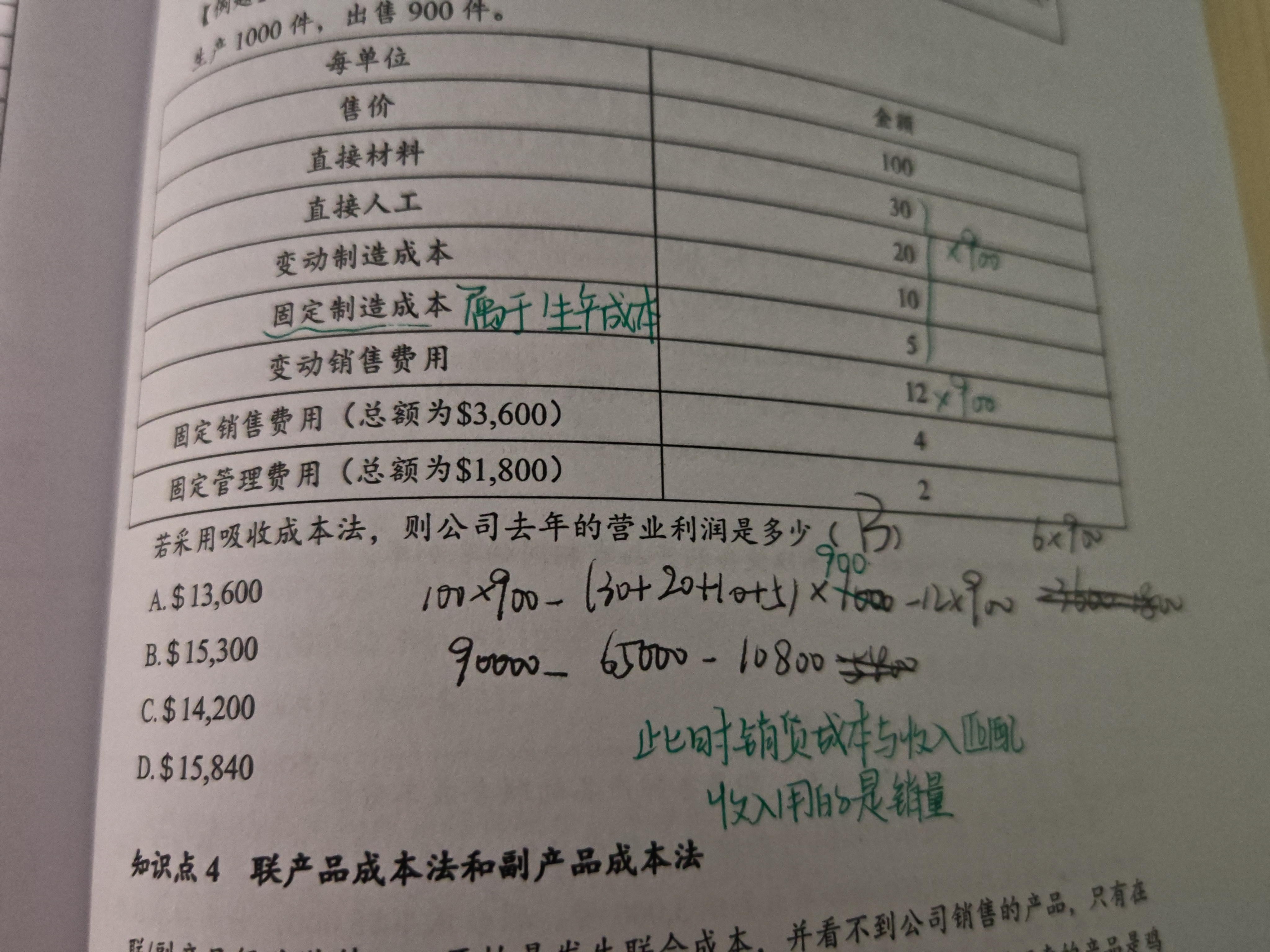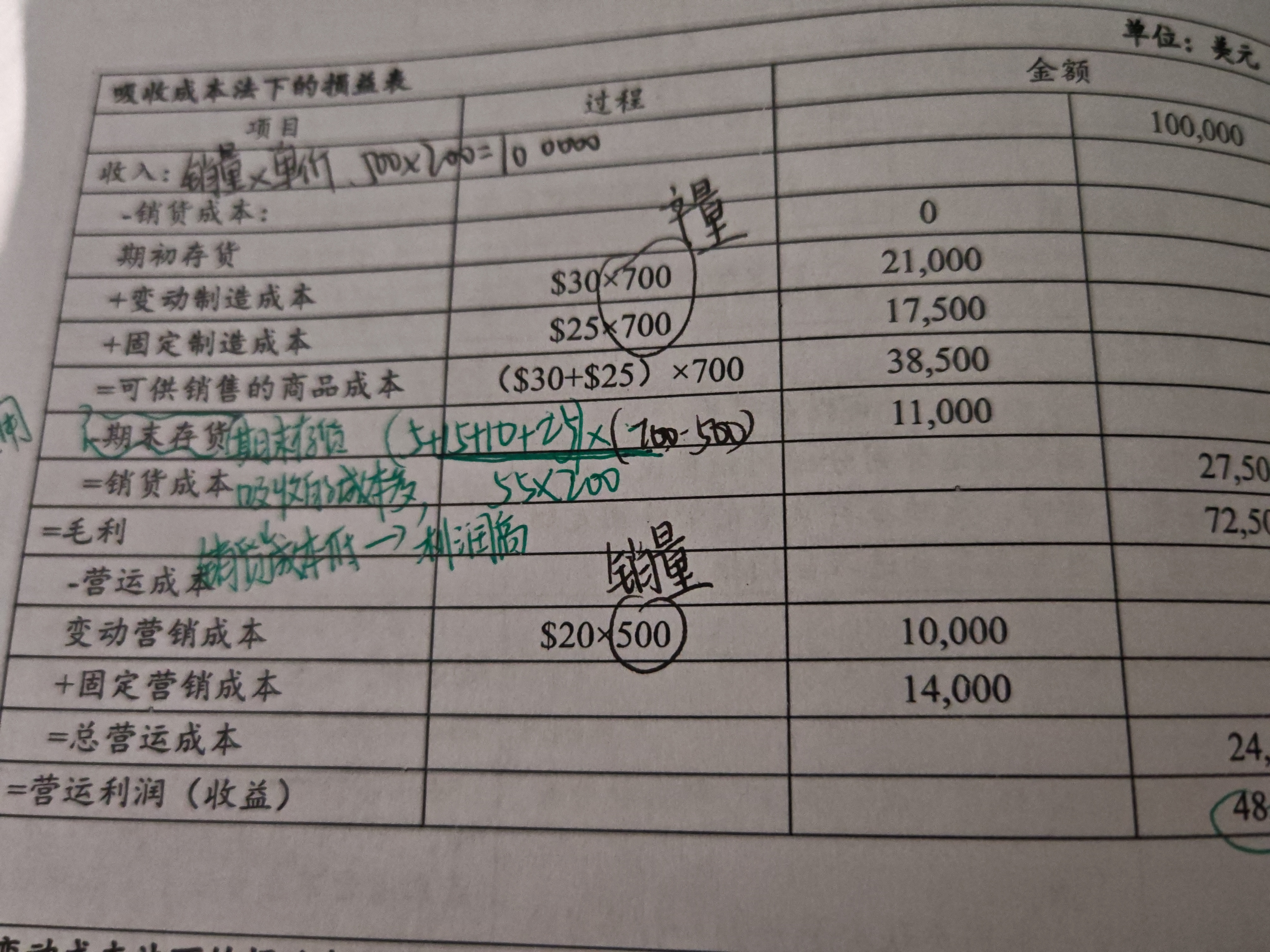 变动成本法是基于实际的销量的。 而吸收成本法的话需要先按产量分摊。