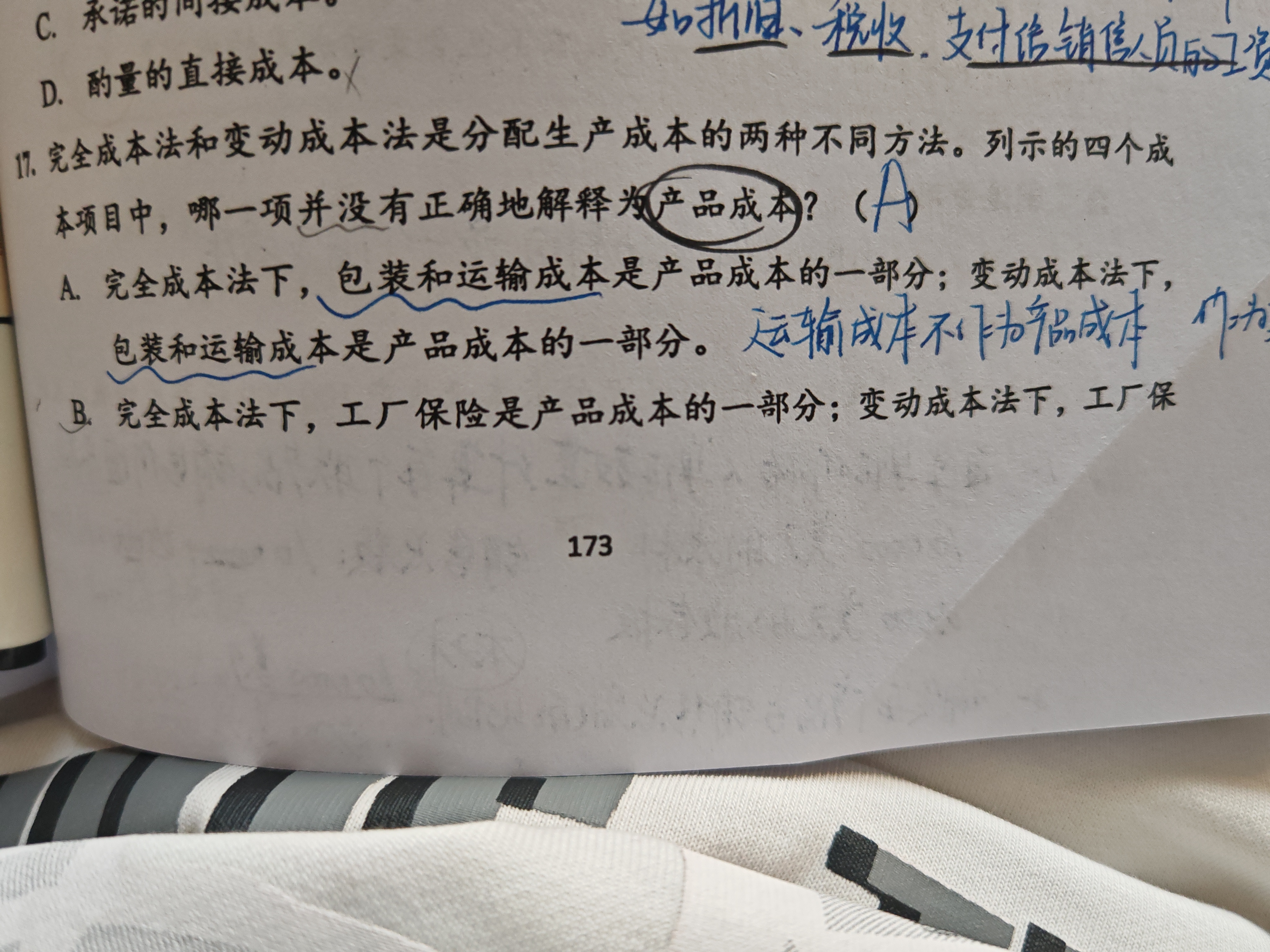 CD 分别说的是原材料和人工,无论在固定还是变动下都是计入成本的。 B 保险是固定生产成本,在完全成本法下,计入成本,在变动成本法下不计入。 BCD都说对了。 A 包装运输是非生产的成本,不用管是固定还是变动,都与产品成本无关的。无论哪种方法都不计入成本