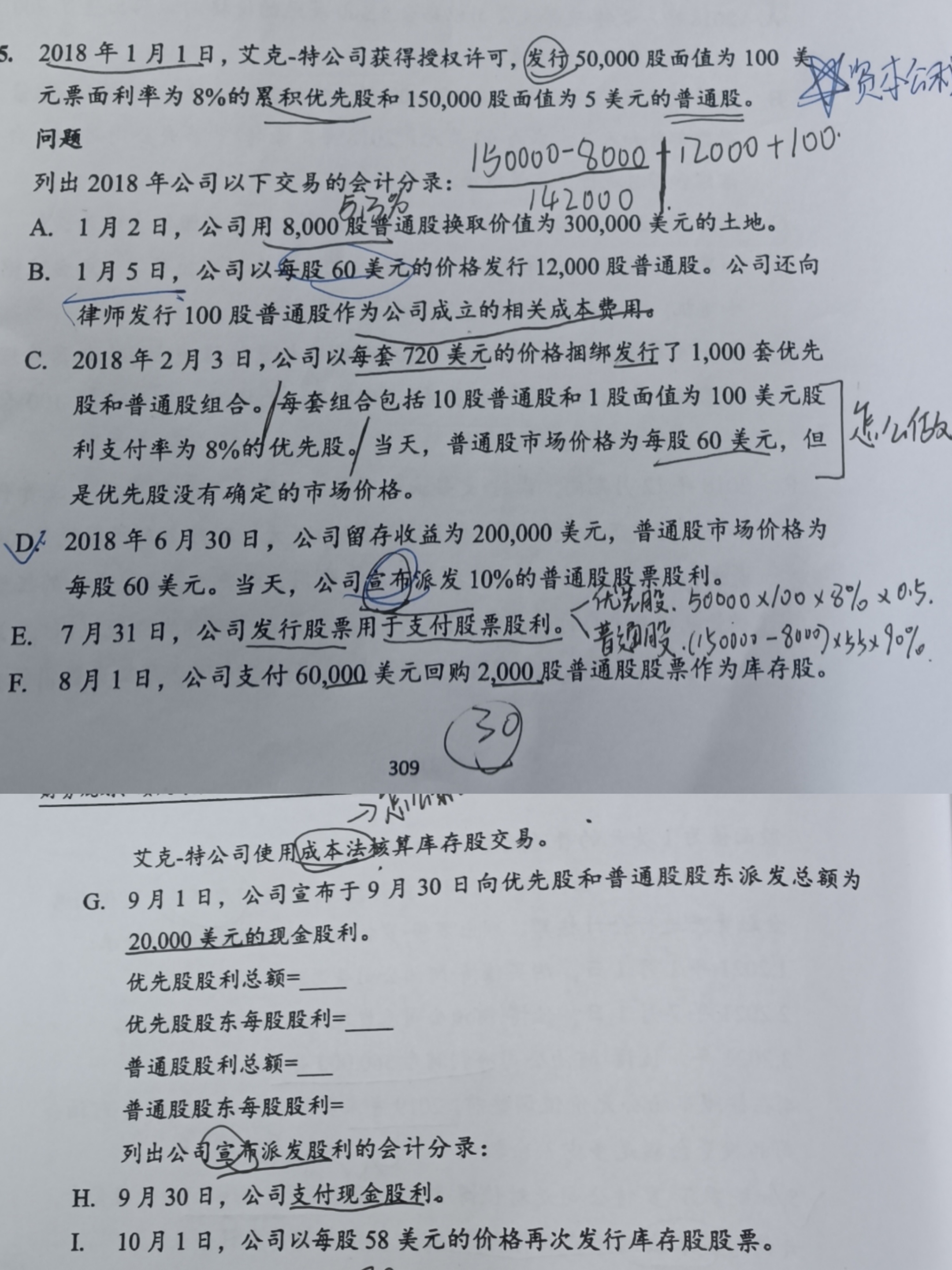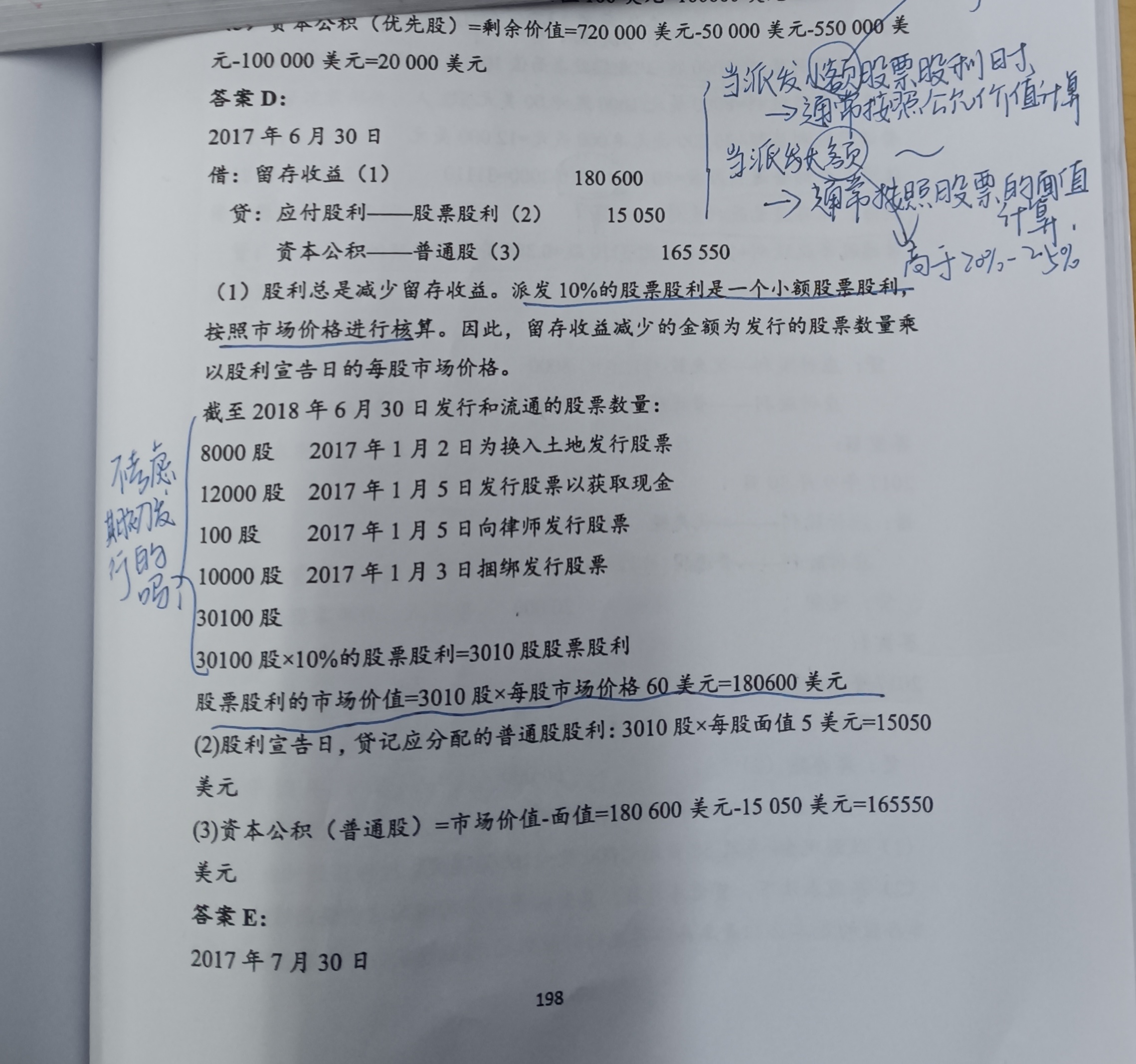 首先我们考试借贷这样的做账不是重点,比例非常低。也不用特别担心哈 然后落脚到本题,我觉得期初的优先股也是要考虑其股利的,答案应该是漏考虑了。 3010 是股票股利,也是会增加股票数量的。最后这是要把所有的股票数量加起来,也就是期初的普通股也是要考虑进去的。