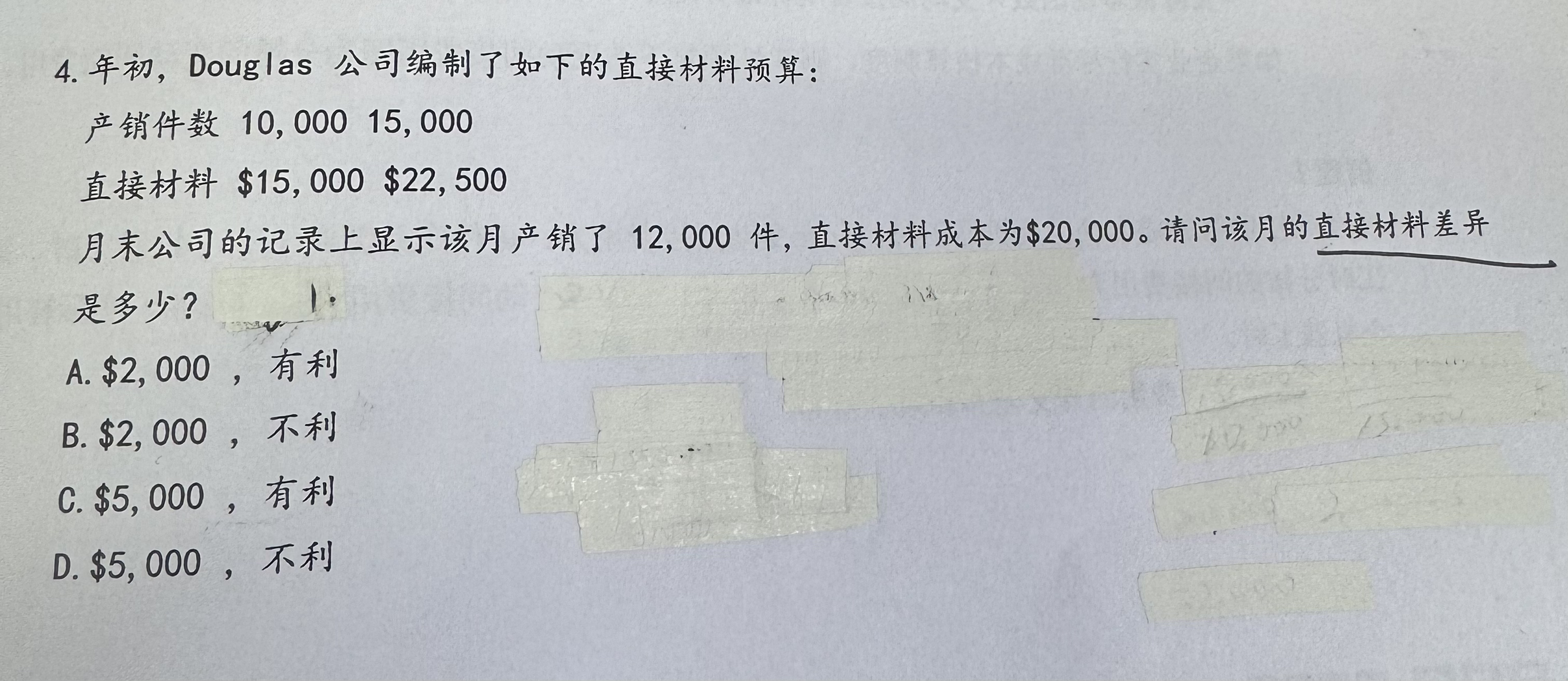 材料差: 价差 = (AP - SP)*AQ = 20 000 - 15000/10000 * 12000 量差 = ( AQ- SQ ) * SP = (实际消耗的材料数量 - 12000* 每单位标准耗费数量 )* 1.5 这题缺少条件。我把公式帮你复习一下,这题删掉即可。 下次咱们同学表明题目的出处,这边后台就可以即时修改了。谢谢啦