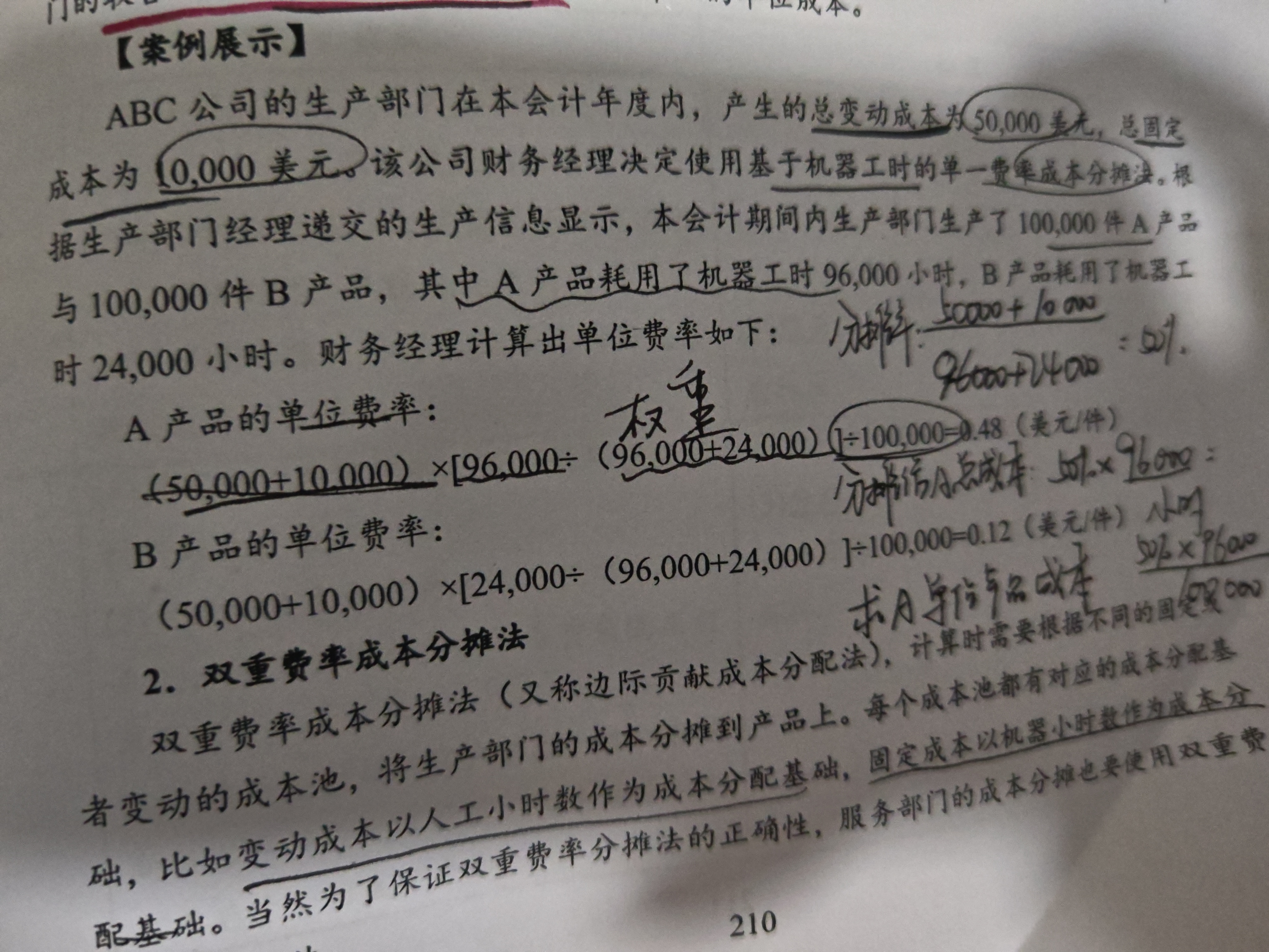 这个意思是按照机器工时来进行分摊。 A 是97000, B 是 24000 , 所以A 分摊的比例就是 97 000/ (97000+24000), 然后按这个比例承担总费用,再除以数量,求出单位成本就好了