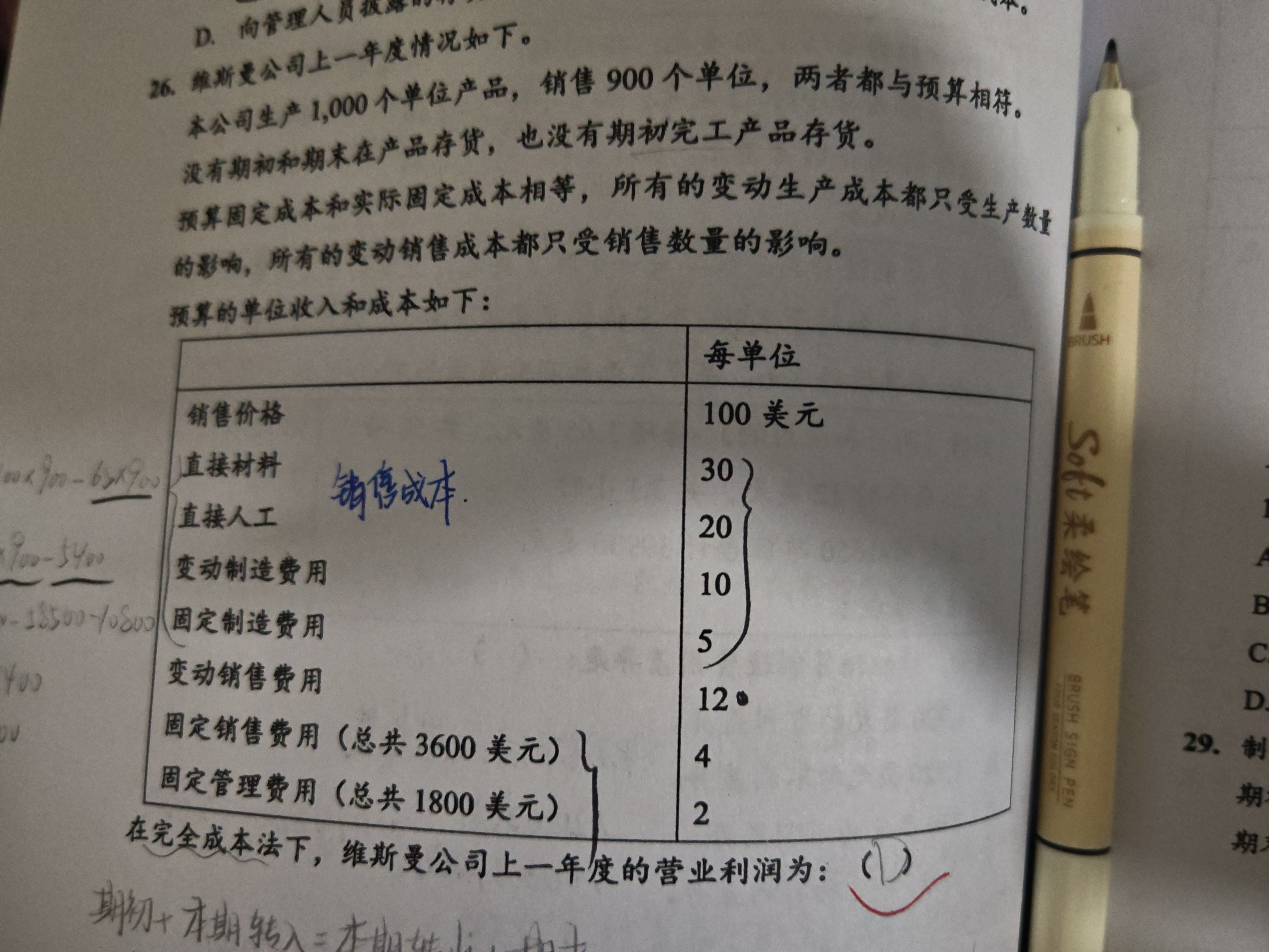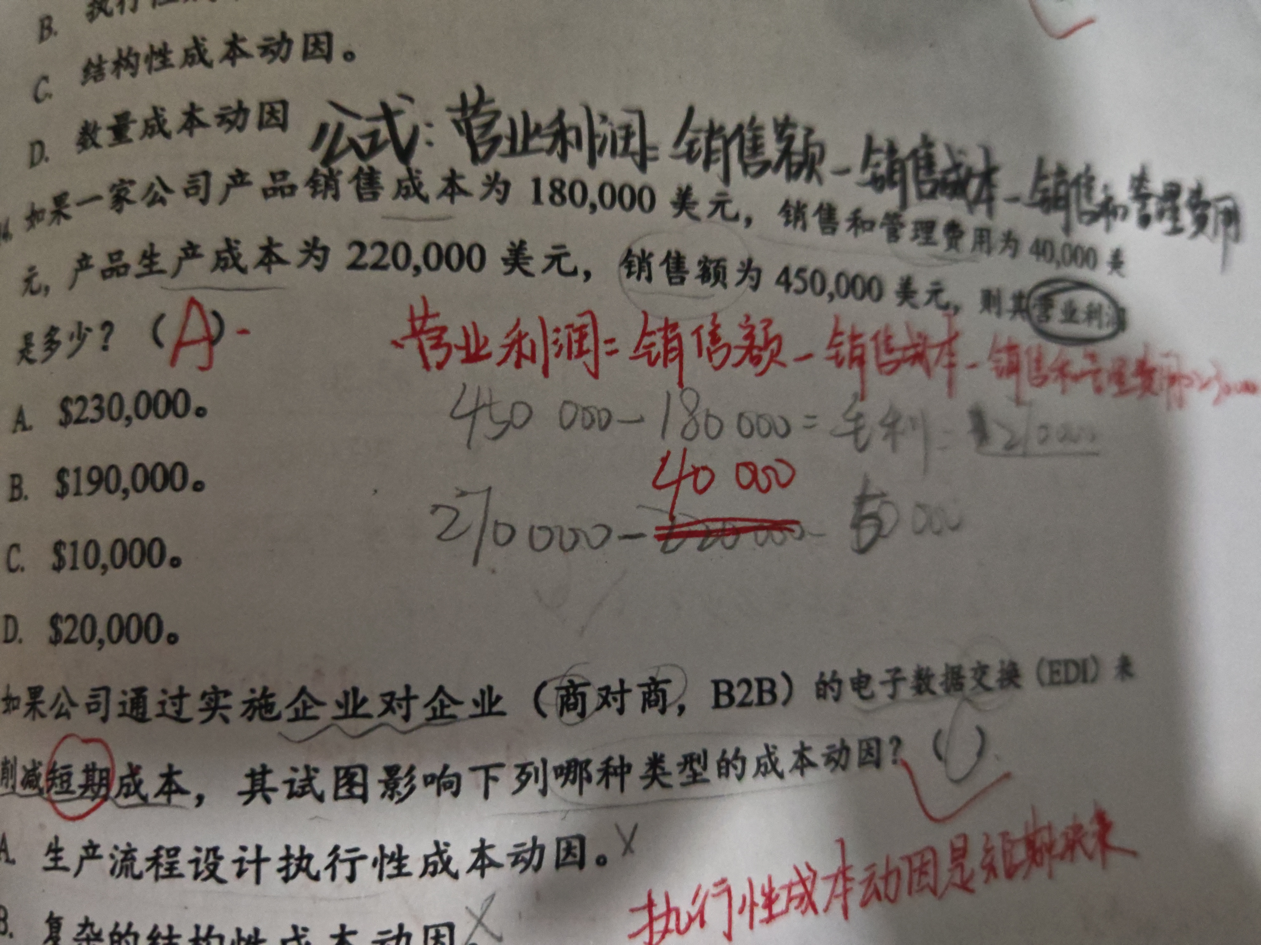 生产成本 进入存货 , 这是资产负债表上的称呼, 如果存货被卖出去了,存货就转为 销货成本。 营业利润是需要减去生产成本(销货成本)的。两道题都要减去