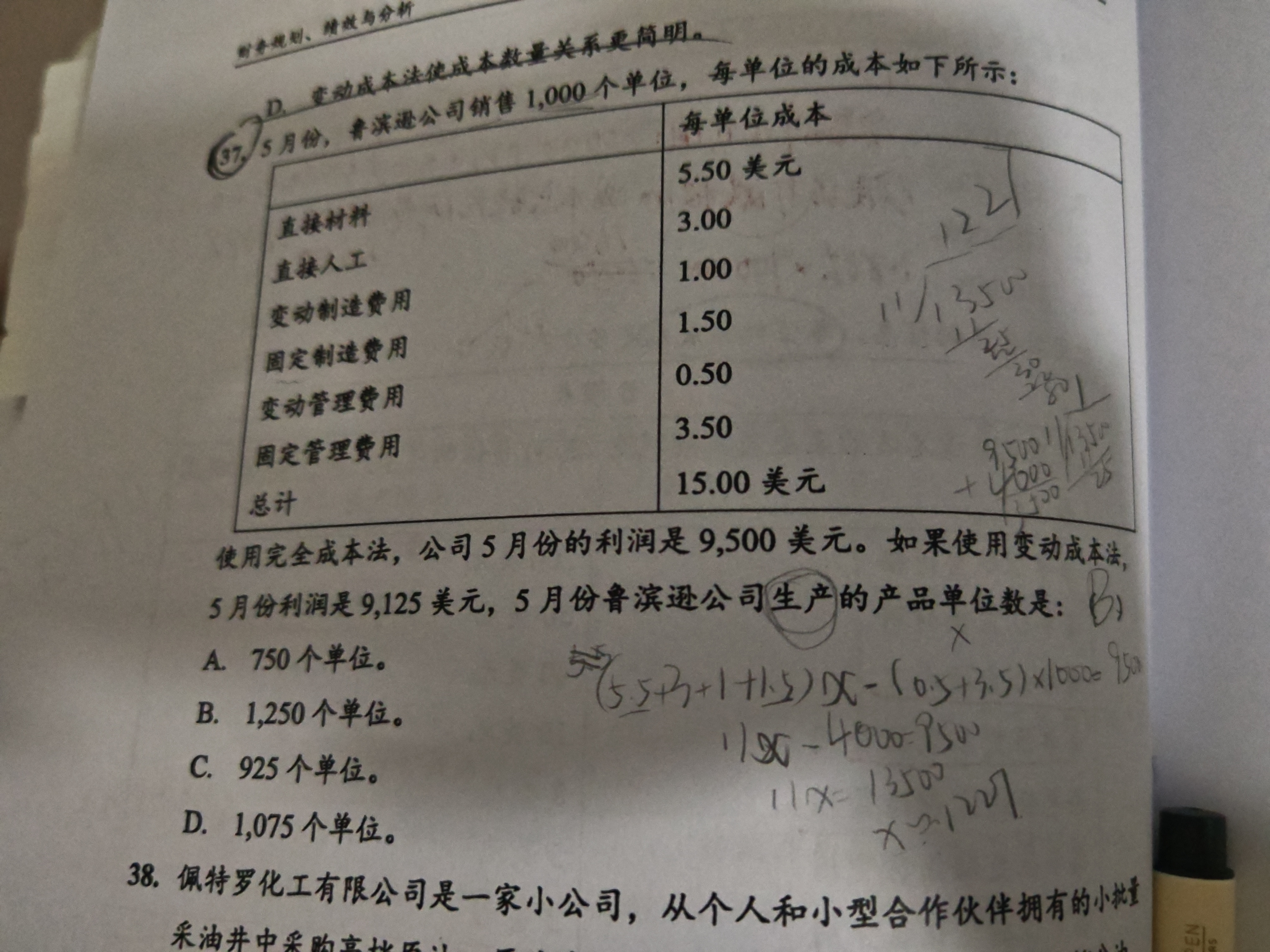 这题考察的知识点是: (产量 - 销量1000) * 单位分摊的固定费用 1.5= 完全成本法下的利润 9500 - 可变成本法下的利润9125 所以产量是 1250 (公式推导平台无法讲解,需要看基础课程。推导过程比较复杂,也可以直接记住公式)