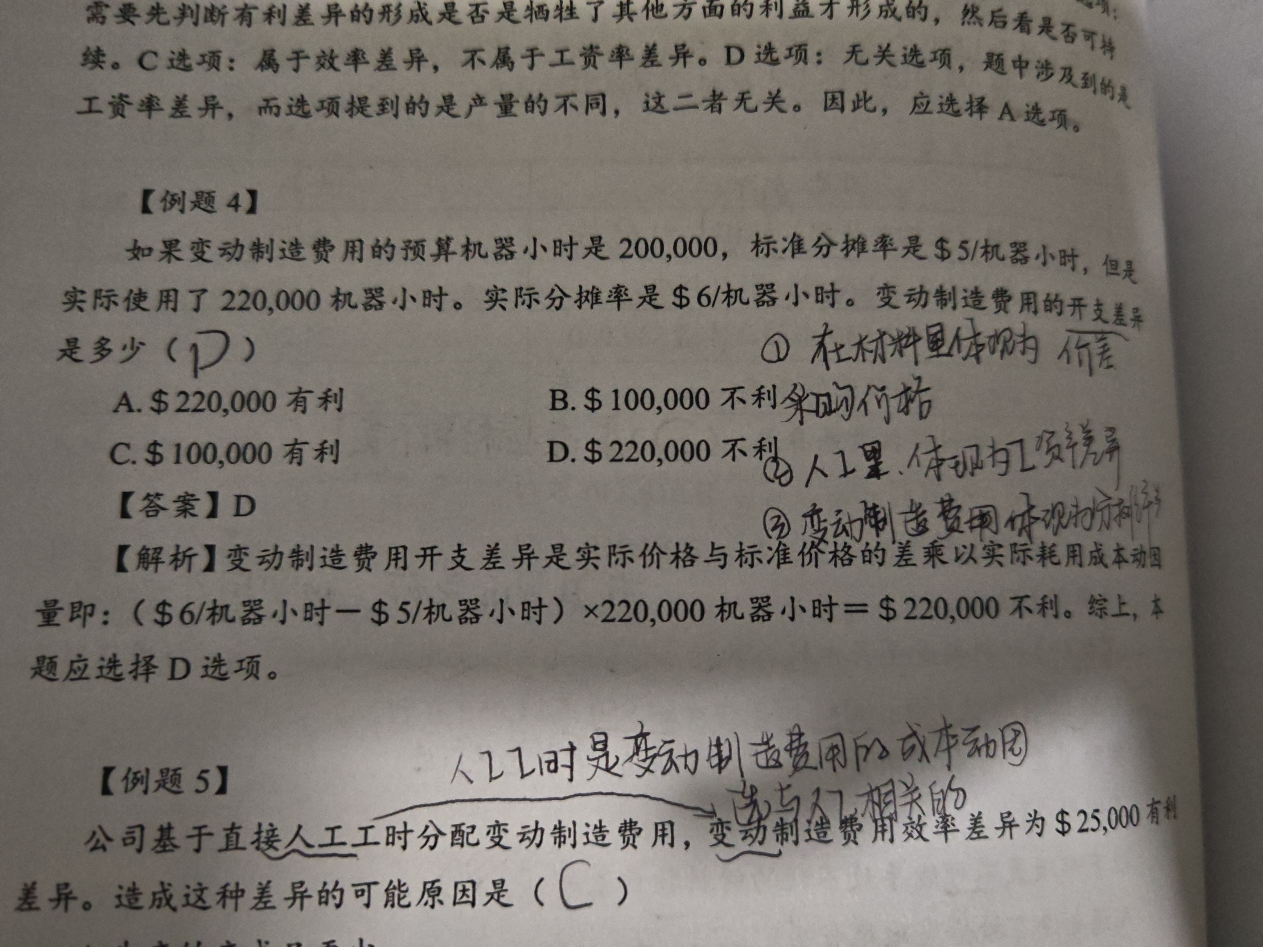 抱歉,前几天系统升级,我把你这个问题不小心隐藏了。才发现。非常抱歉。 变动制造费用的分摊率在本题中, 实际每小时分摊了6元, 大于 预计每小时发生的5元。 所以成本实际的越大,那最终利润就越低,不利差