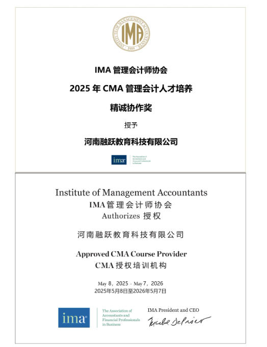 凭借过硬的教学实力与服务品质,融跃教育成功蝉联ACCA2026-2027*级认可培训机构,打造出多项指标超越官方标准的教学体系;积极响应FRM中文考试全球首考落地,为中国大陆考生提供更适配的备考支持;与IMA协会一道推动管理会计在中国的不断发展,荣获CMA管理会计人才培育精诚协作奖;作为BPP、KAPLAN战略合作伙伴,同步解读CFA科目权重调整、FRM中文考试变化;解读CPA考试时间节点等关键信息,以专业教研助力学员把握考试方向、提升通关效率。