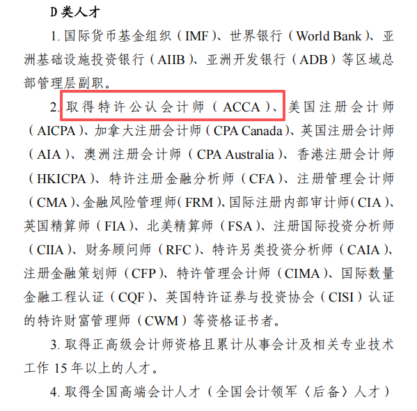 近日,海南省委人才工作领导小组办公室正式印发2026版《海南自由贸易港高层次人才分类标准》。在这一最新版高层次人才标准中,“取得特许公认会计师(ACCA)资格证书者”被明确列入金融财税领域的D类高层次人才。